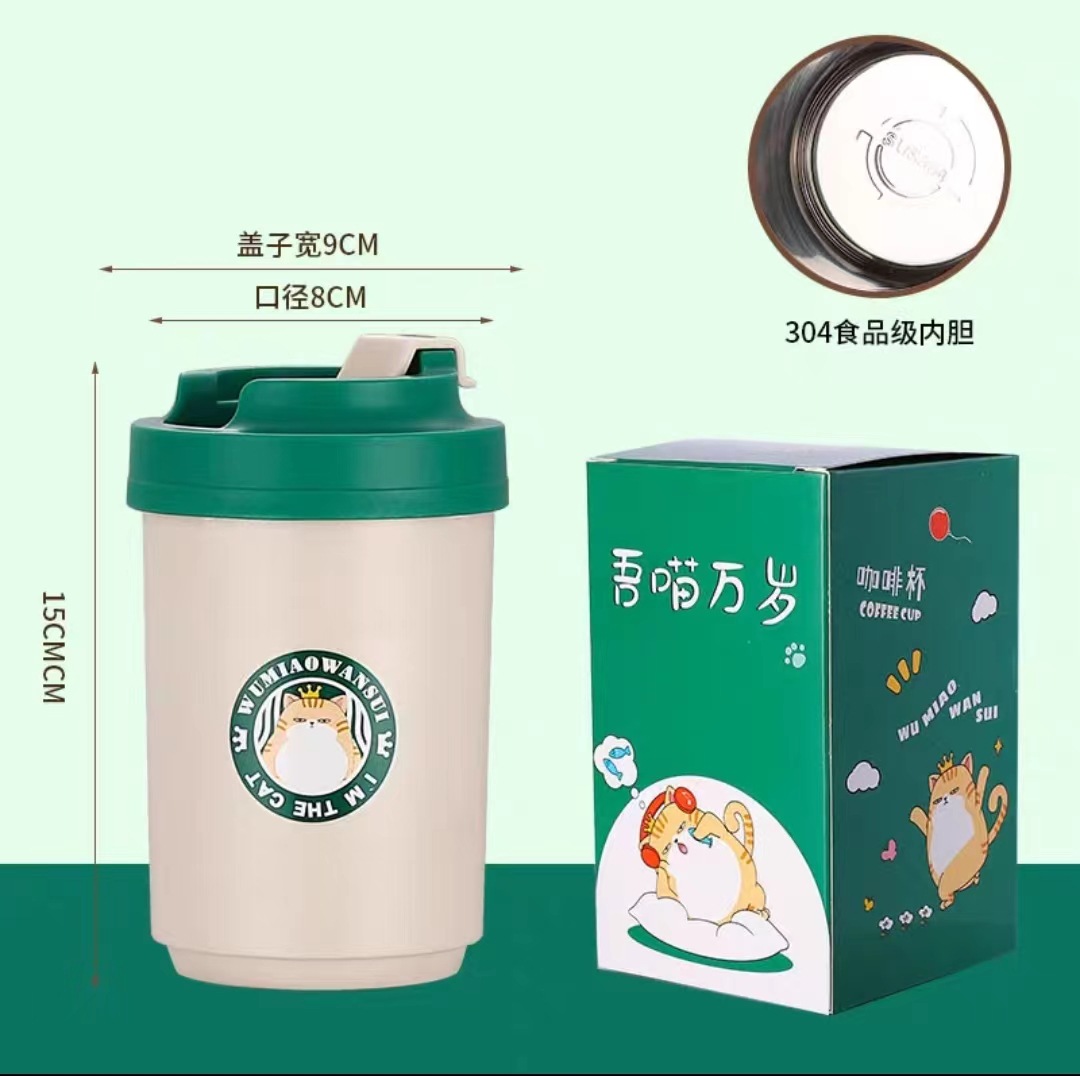 • 커피 컵 나는 녹색 고양이 스테인레스 스틸 라이너 (380ML).