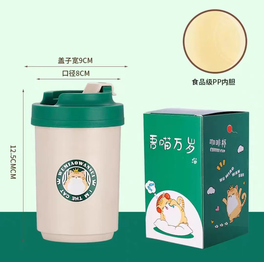 • 커피 컵 내 녹색 고양이 PP 라이너 (400ML