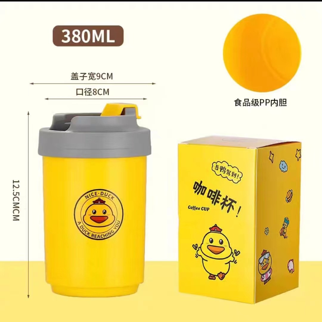 • 커피 컵 작은 노란색 오리 스테인레스 스틸 라이너 (380ML).