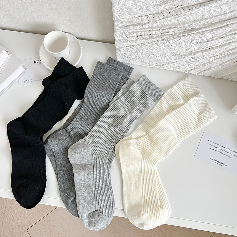 발레 스타일 회색 뼈없는 양말 여성용 종아리 중반 양말 작은 가죽 신발이 달린 초박형 봄 여름 빗질 면 줄무늬 파일 양말스토어 가기
