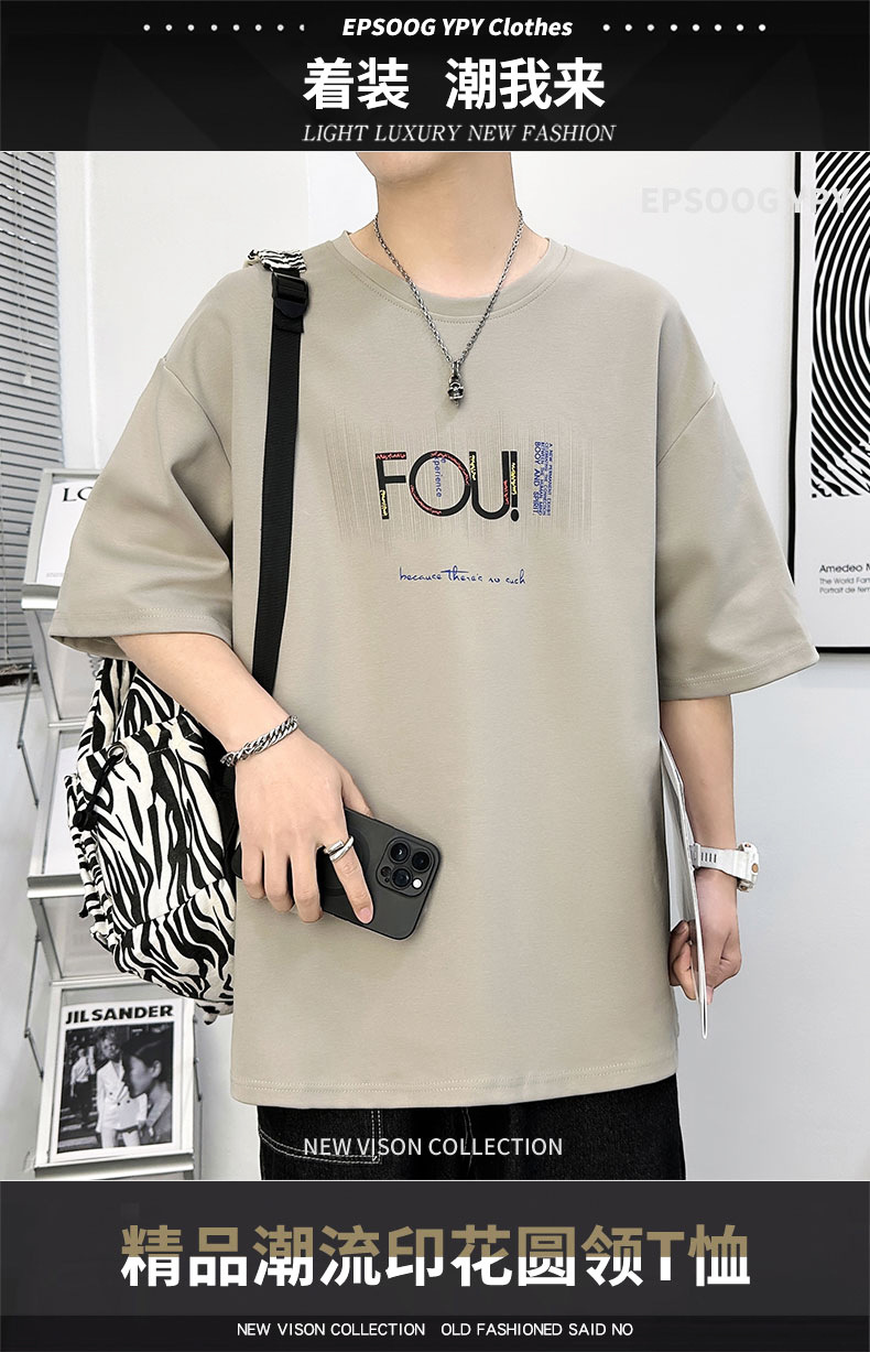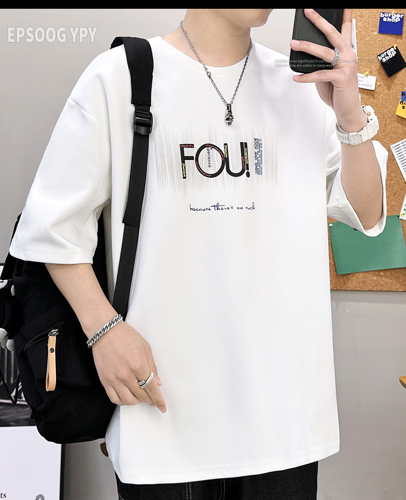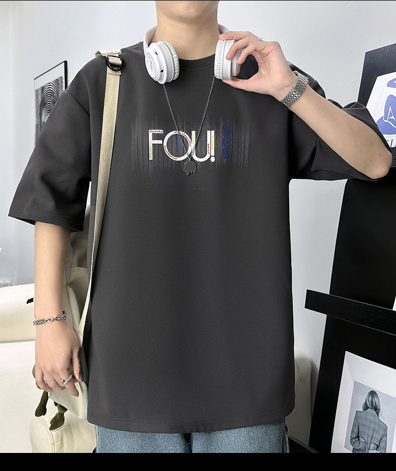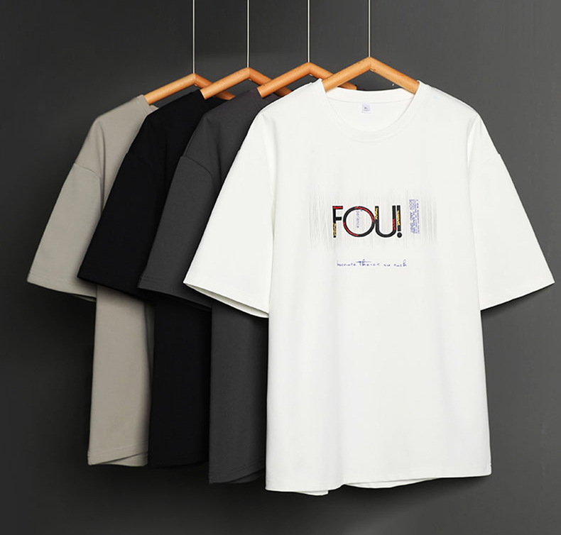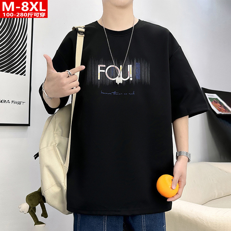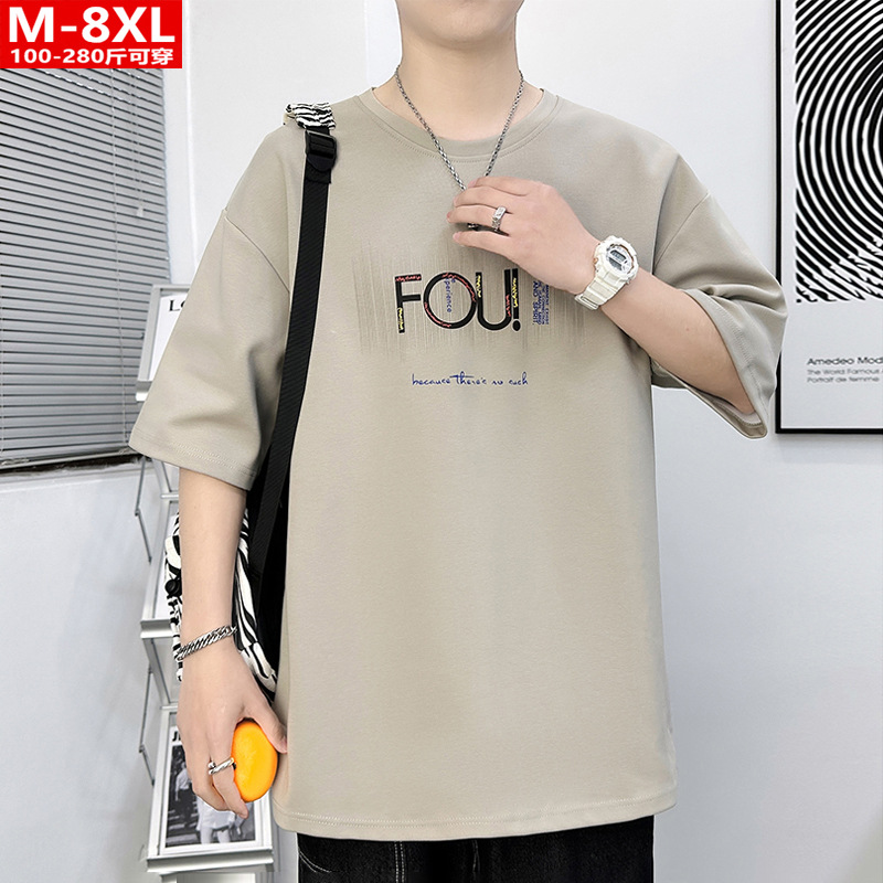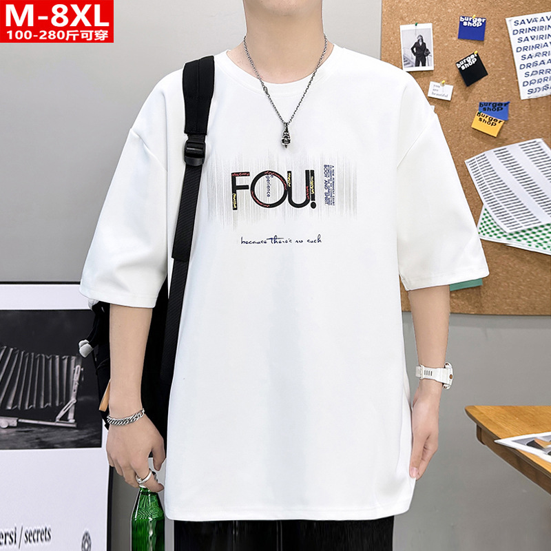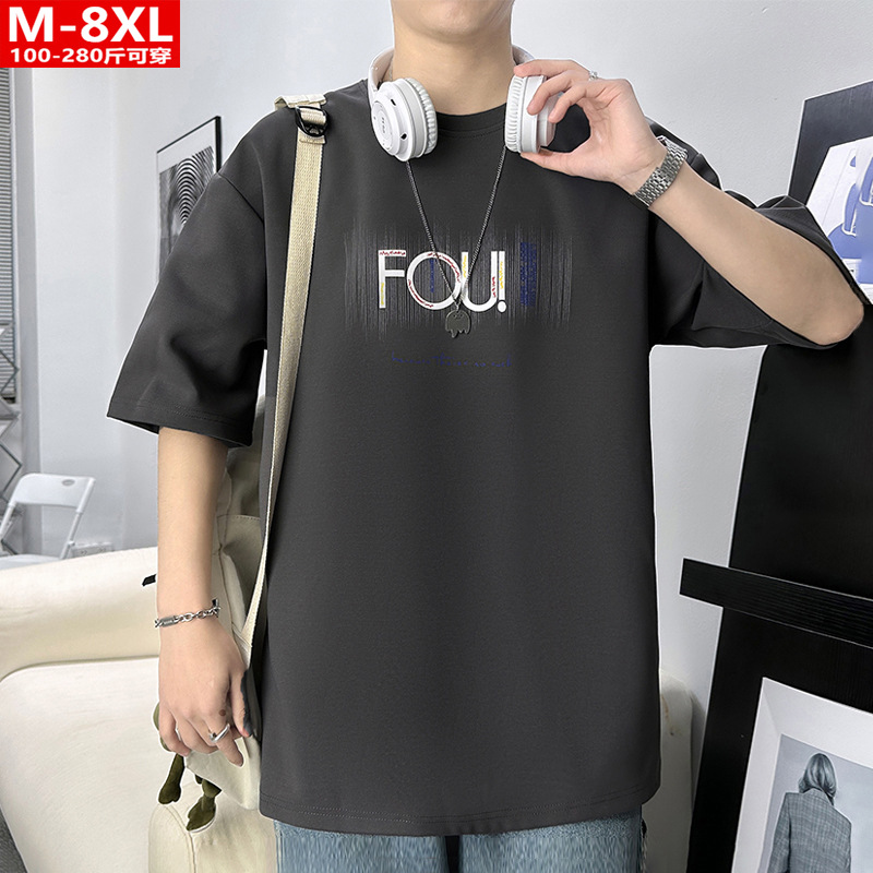 여름 트렌디 한 홍콩 스타일 통통한 남성용 프린트 라운드 넥 반팔 티셔츠 플러스 대형 느슨한 단색 티셔츠스토어 가기