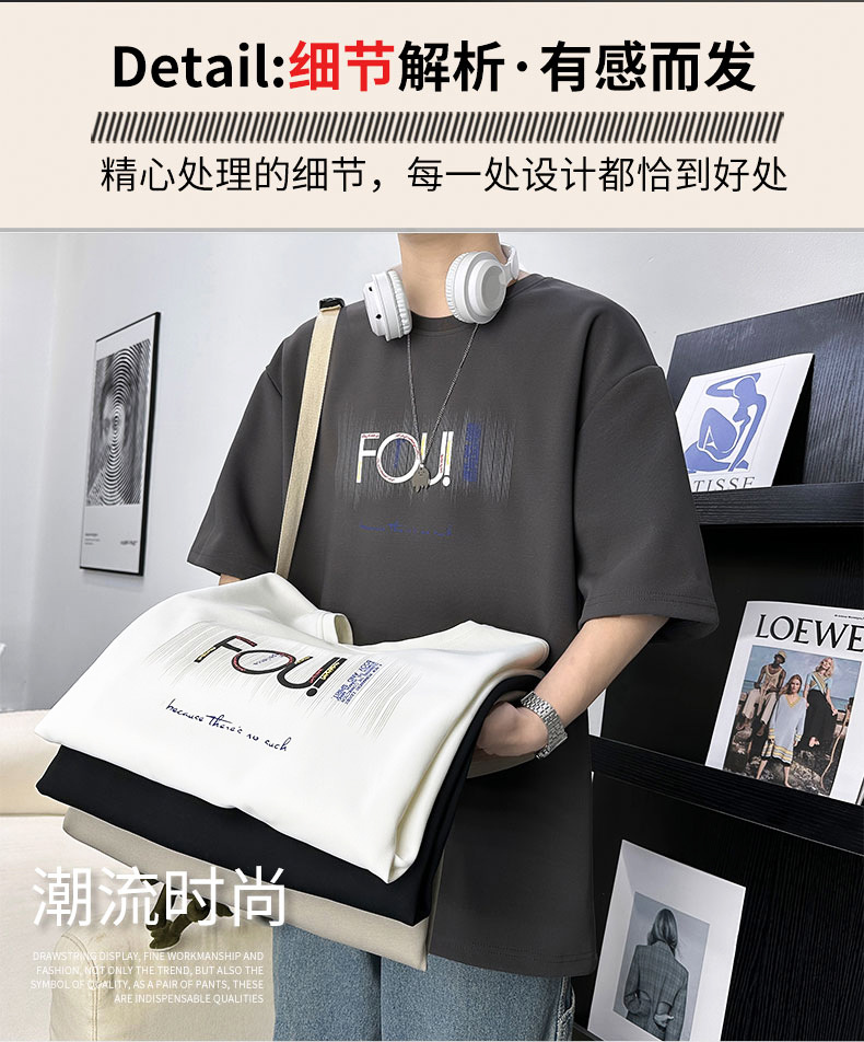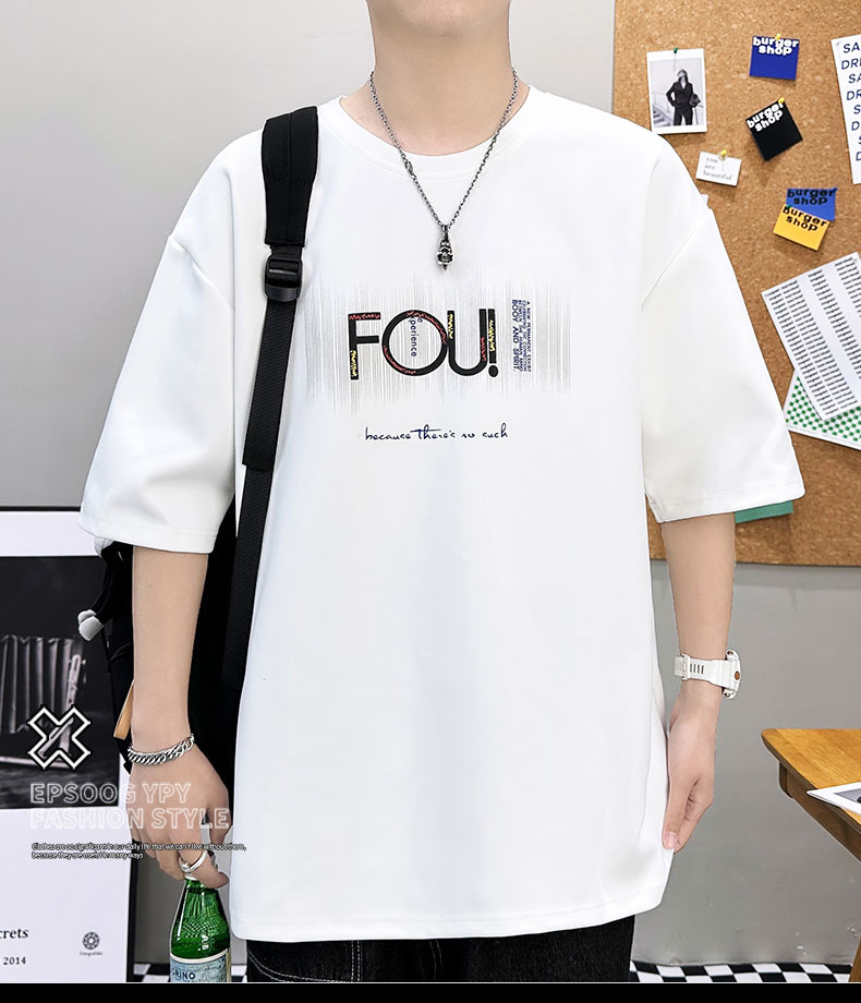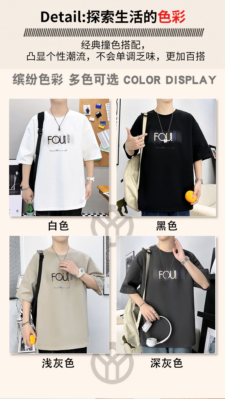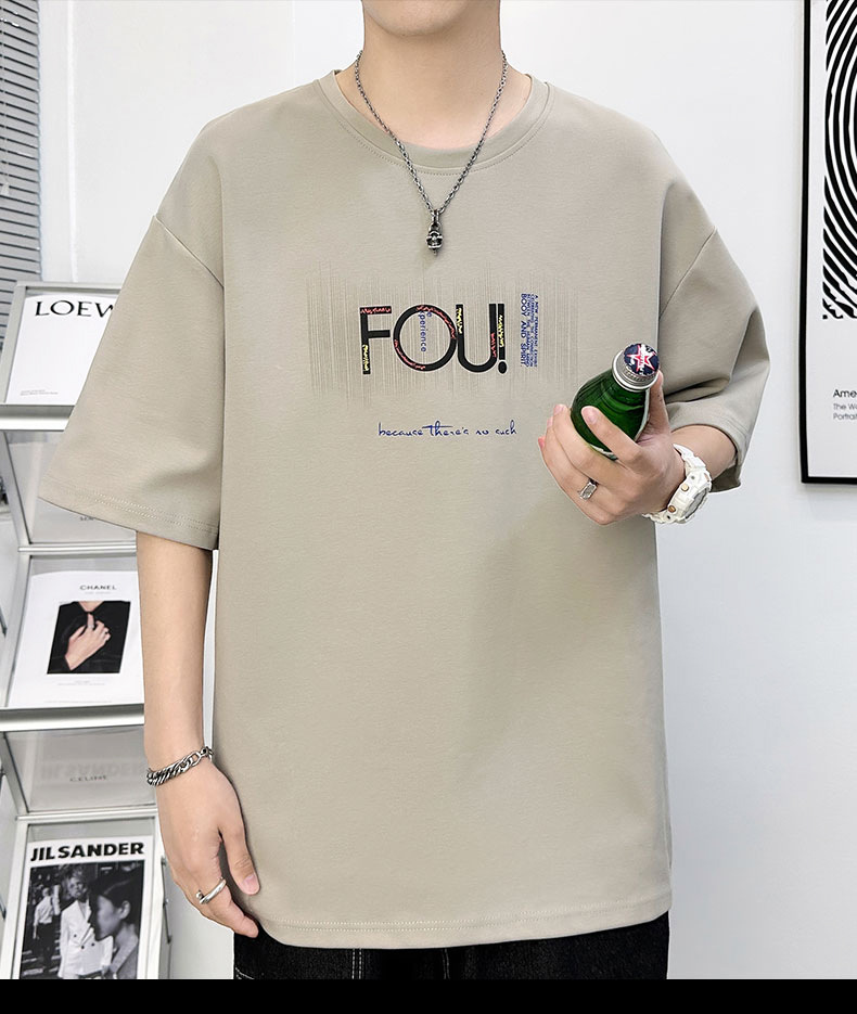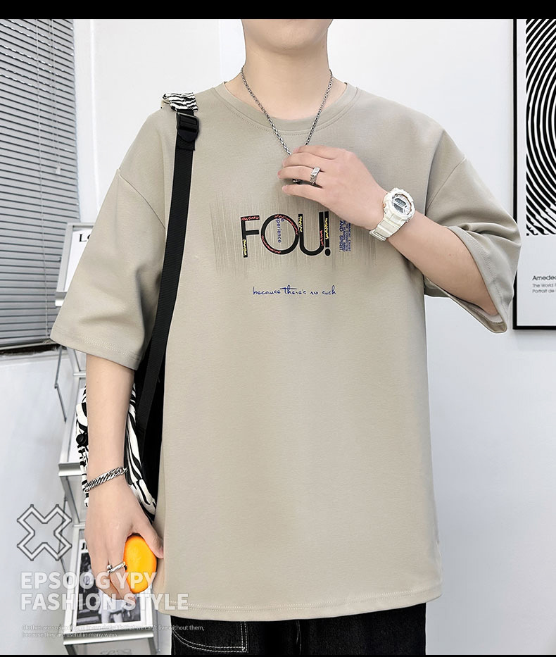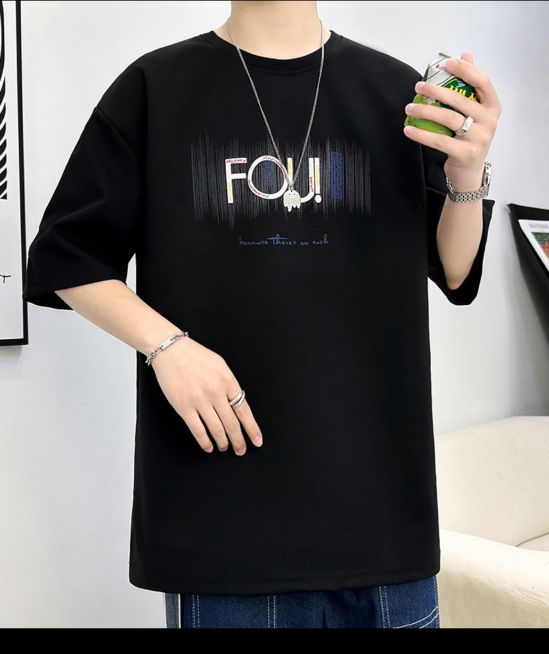 여름 트렌디 한 홍콩 스타일 통통한 남성용 프린트 라운드 넥 반팔 티셔츠 플러스 대형 느슨한 단색 티셔츠스토어 가기