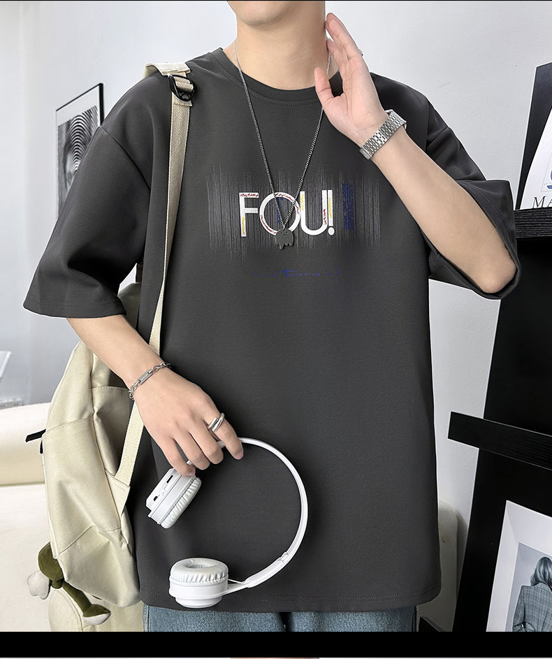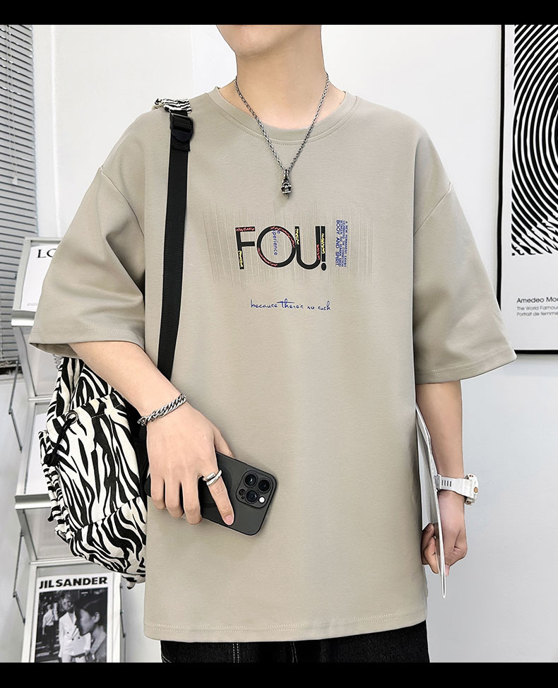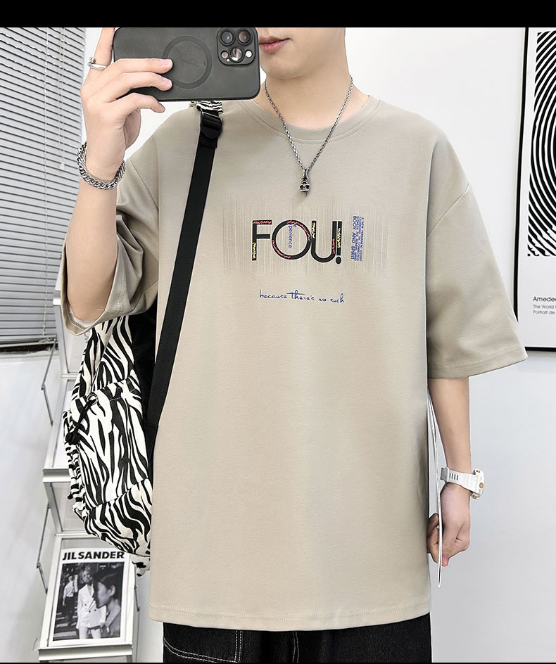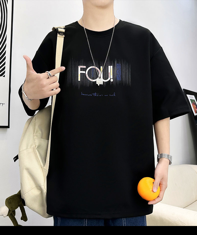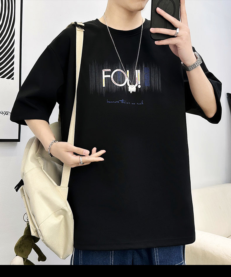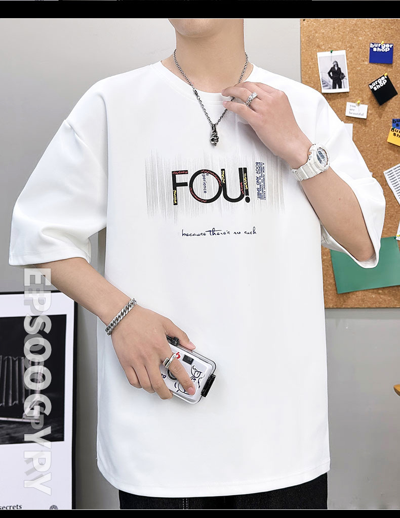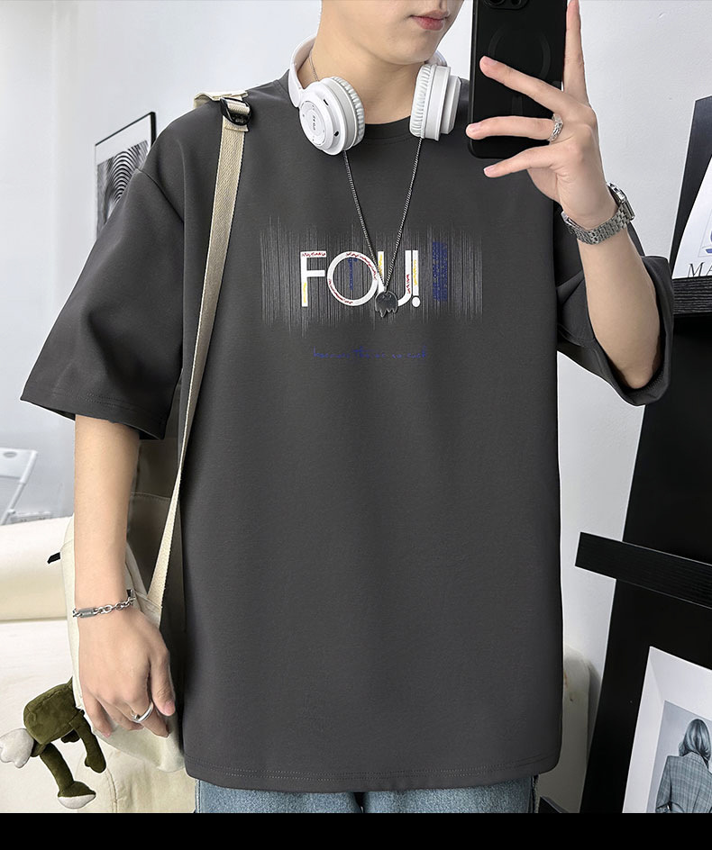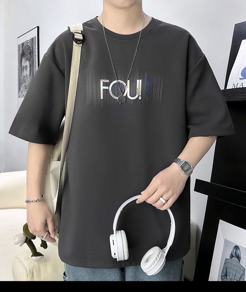 여름 트렌디 한 홍콩 스타일 통통한 남성용 프린트 라운드 넥 반팔 티셔츠 플러스 대형 느슨한 단색 티셔츠