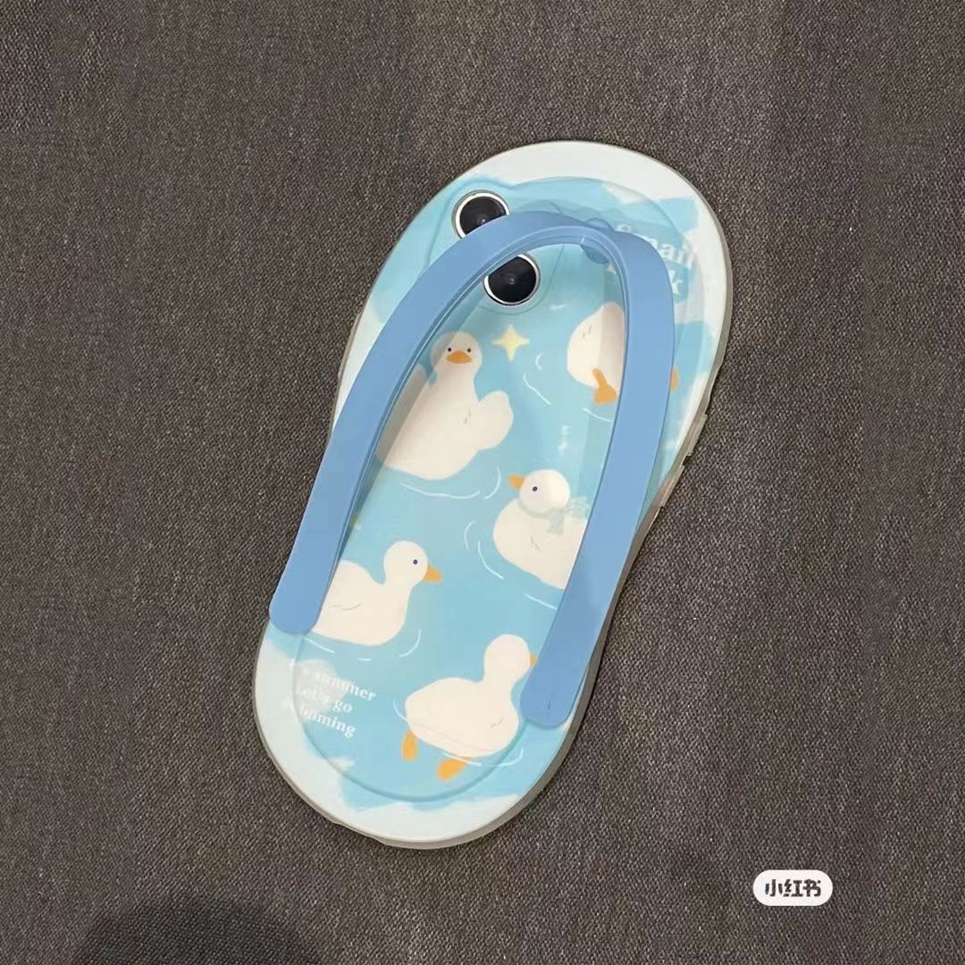 • 투명 슬리퍼-FL 물 흰 오리 놀이 (파란색 신발 끈)