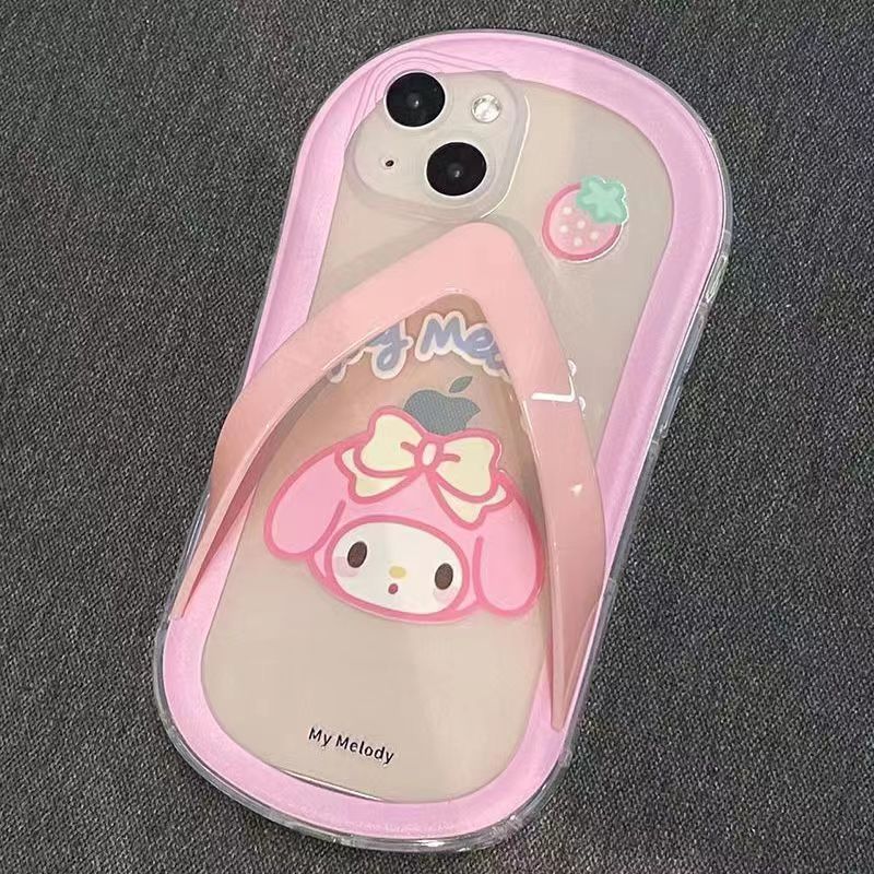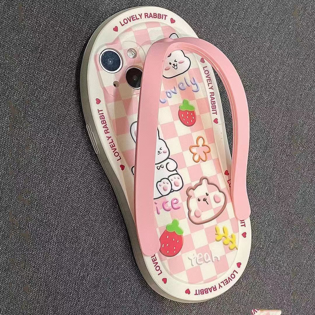 • 투명 슬리퍼-FL 곁눈질 딸기 토끼 (파우더 신발 끈)
