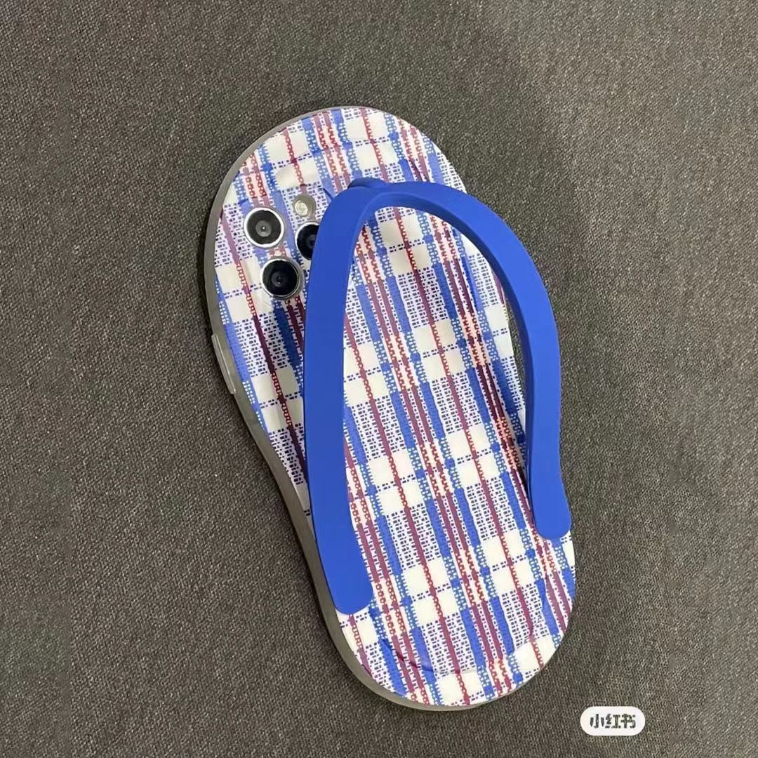 • 투명 슬리퍼-FL 격자 무늬 줄무늬 파란색과 흰색 (파란색 신발 끈)