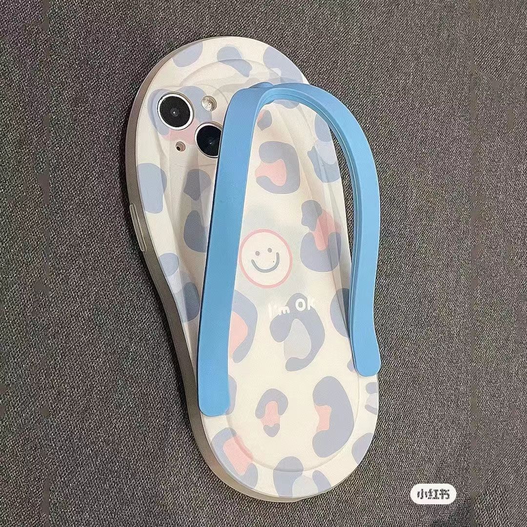 • 투명 슬리퍼-FL 스마일리 레오파드 무늬 (파란색 신발끈)