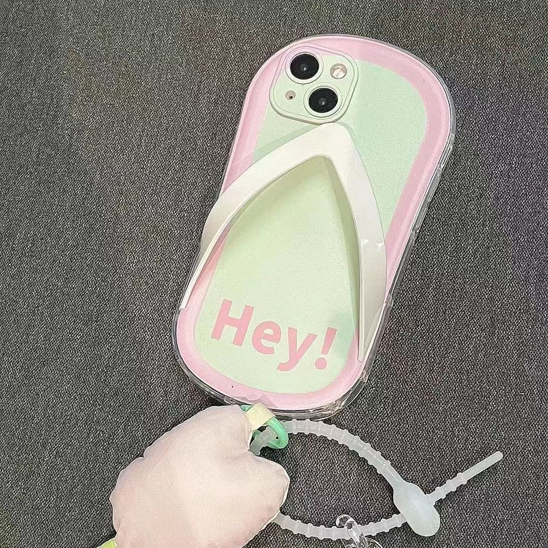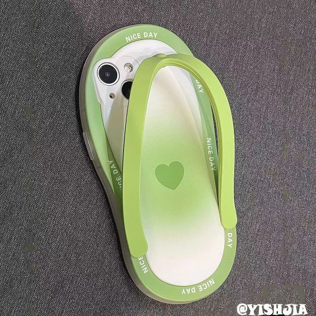 • 투명 슬리퍼-FL 녹색 작은 심장 (녹색 신발 끈)
