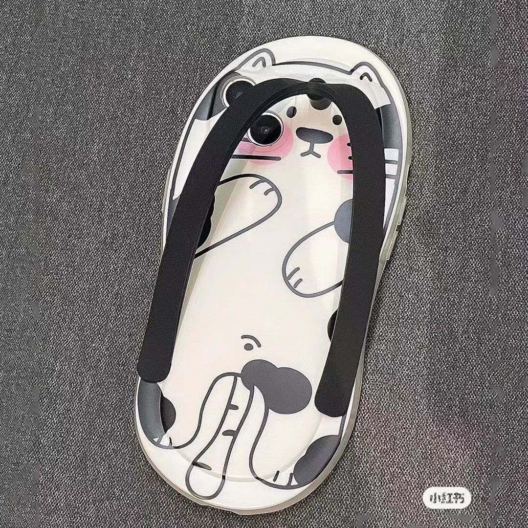 • 투명 슬리퍼-FL 스탠딩 블러싱 고양이 (블랙 신발 끈)