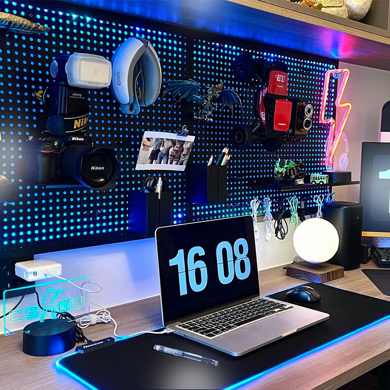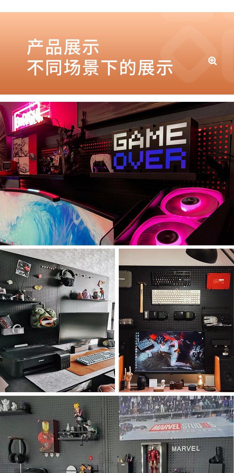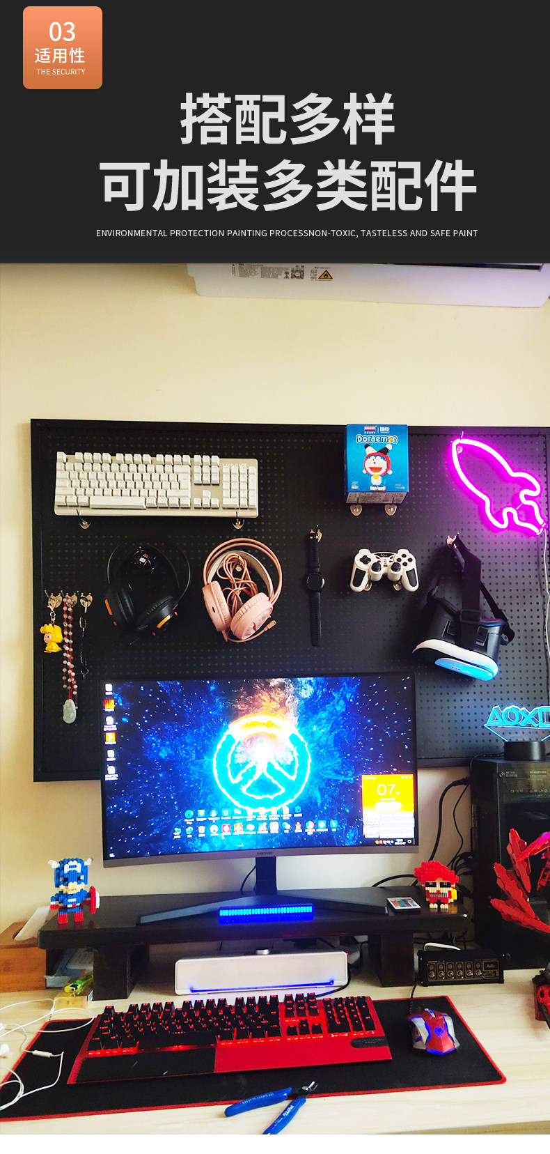 GZ6M 구멍판 게이밍 벽면 선반 게이밍 룸 데스크탑 컴퓨터 책상 장식 수납 걸이판 디스플레이 선반