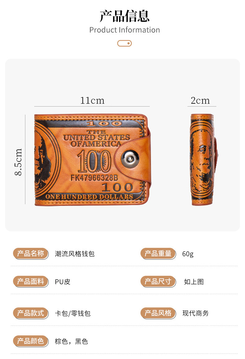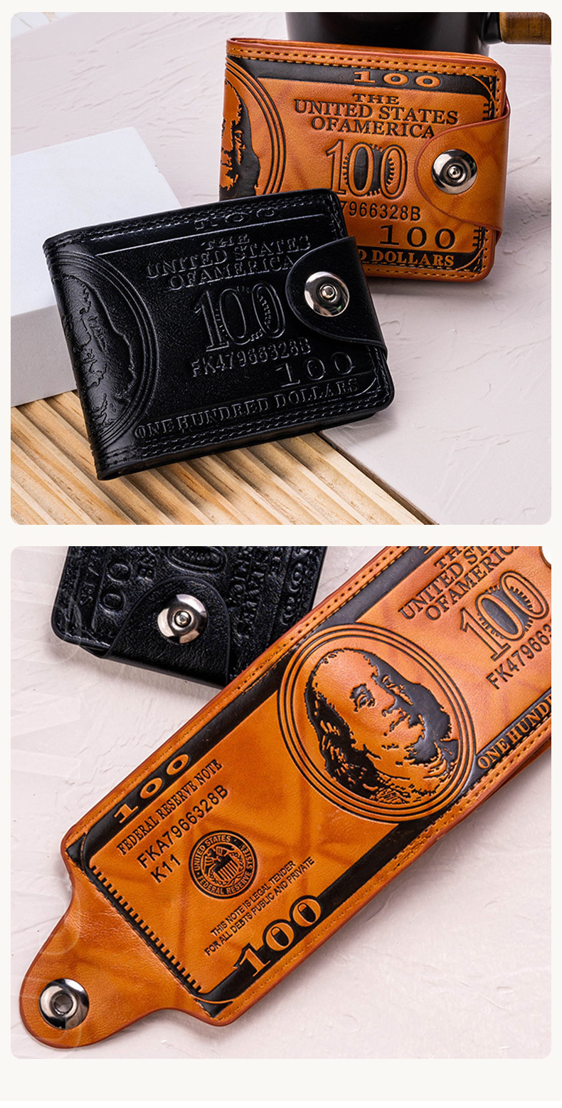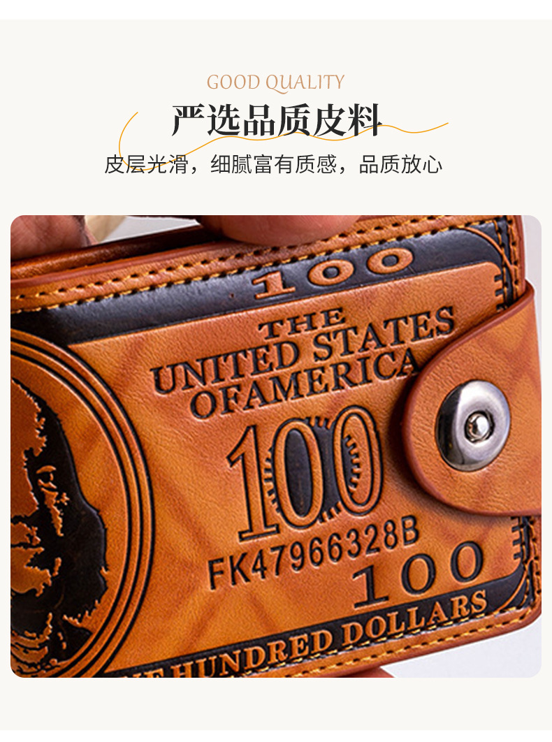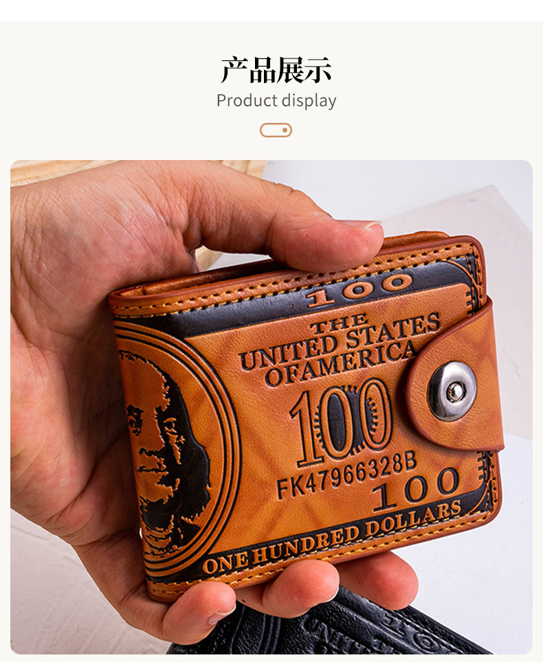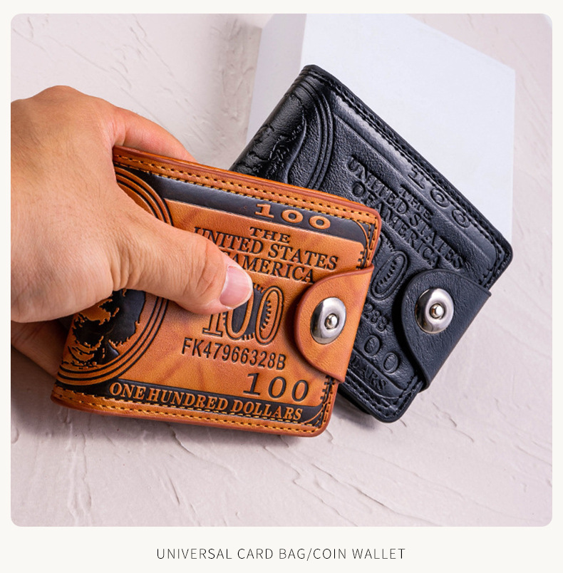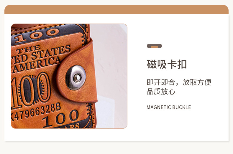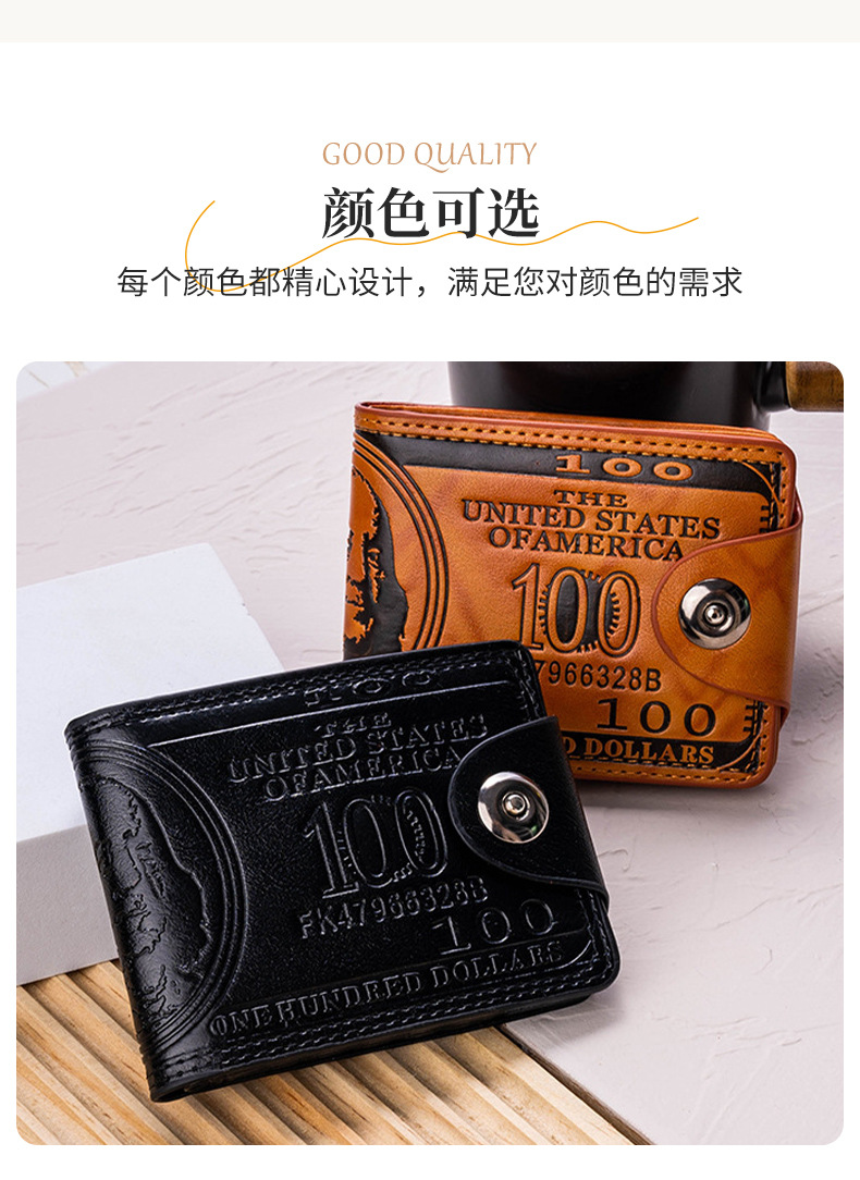 크로스보더 유럽 및 미국 스타일 남성용 숏멀티카드지갑 PU 다중포켓 대용량 트렌디 브랜드 80% off 버클형 미국달러지갑