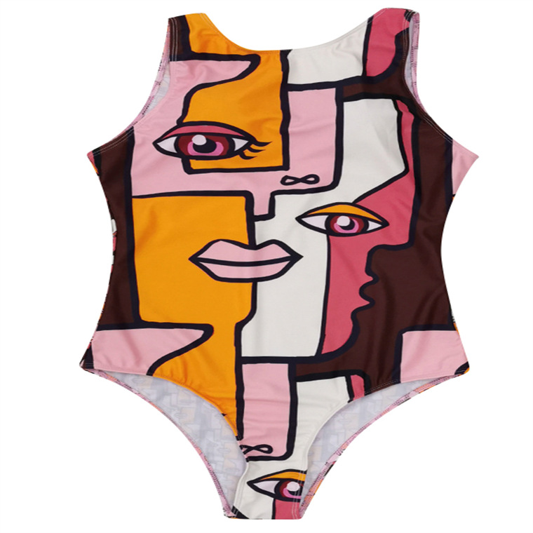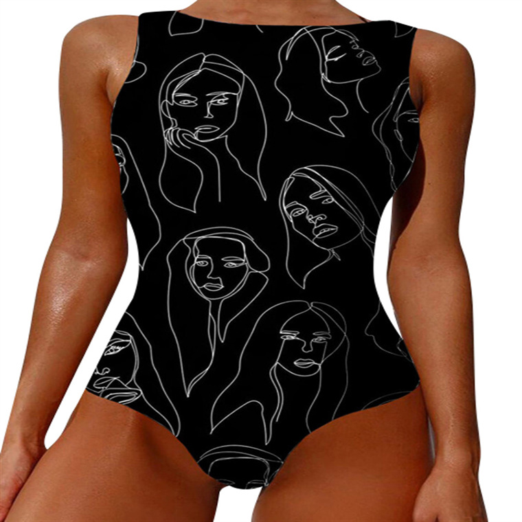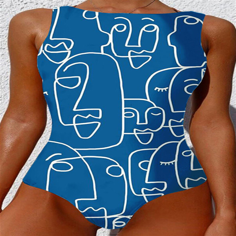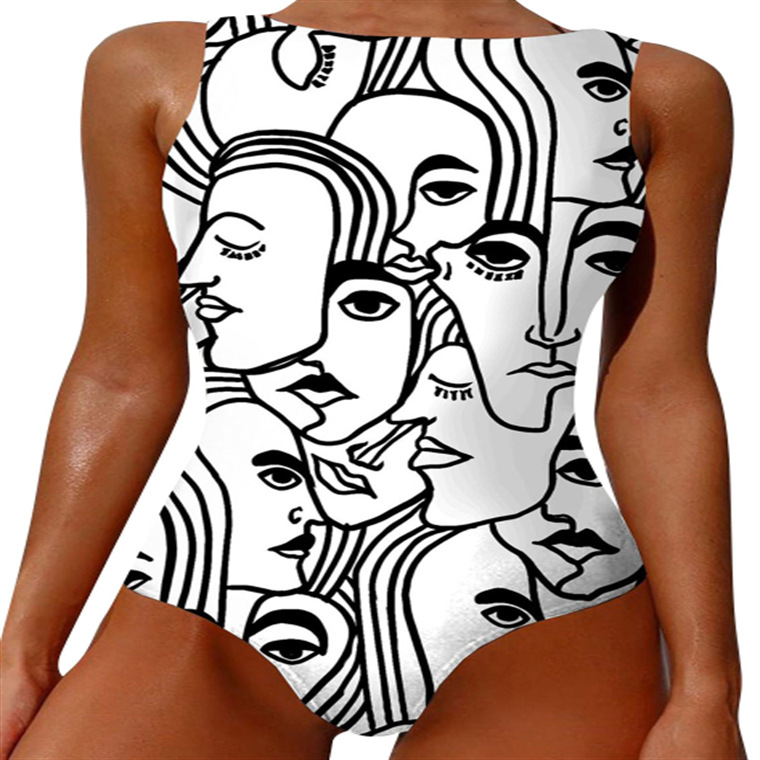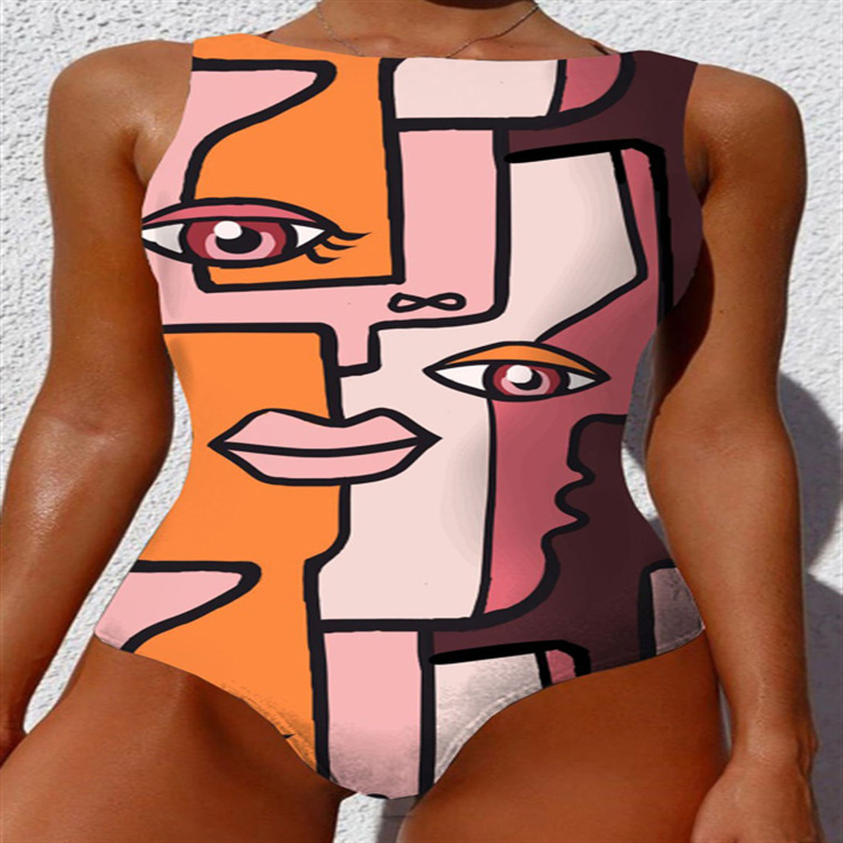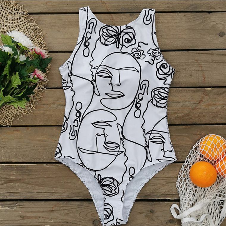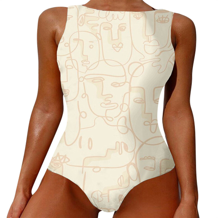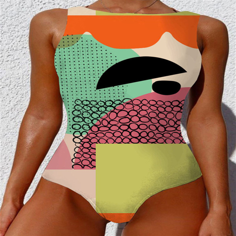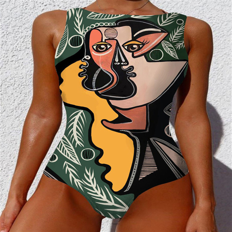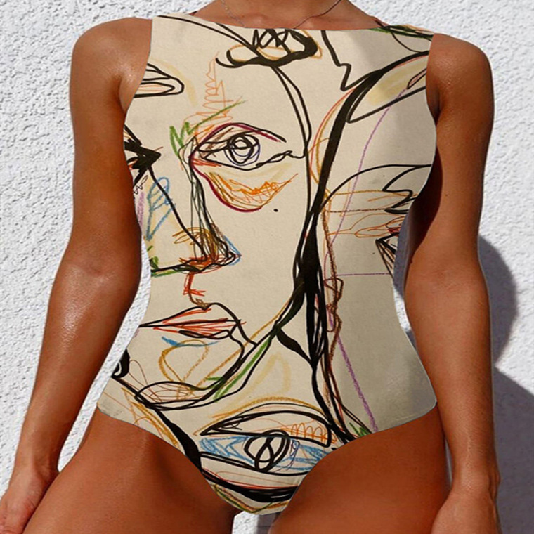 2023 추상 바디 아트 유럽과 미국의 고탄성 크로스 보더 원피스 수영복