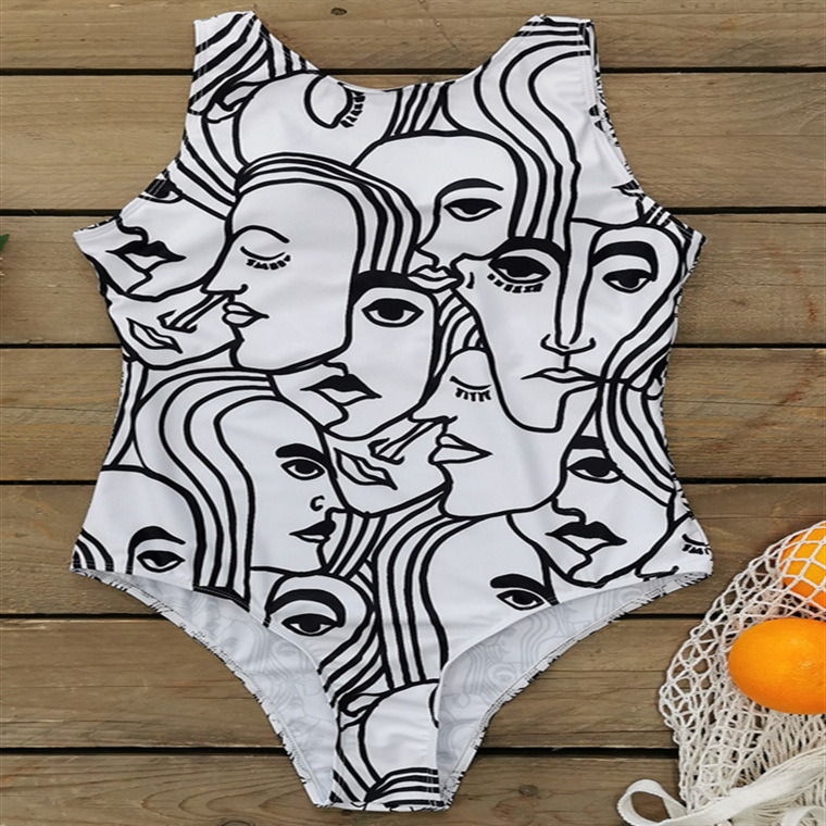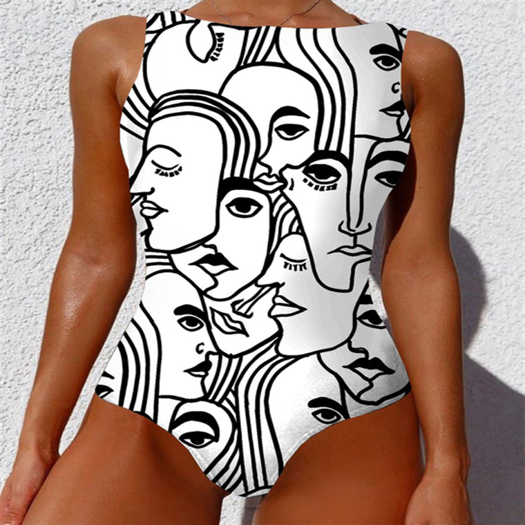 2023 추상 바디 아트 유럽과 미국의 고탄성 크로스 보더 원피스 수영복스토어 가기