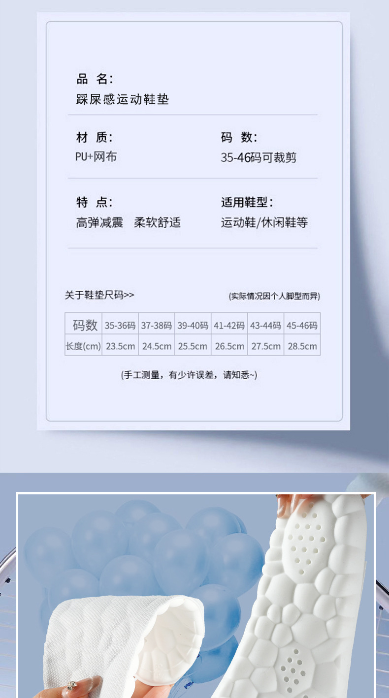 PU 깔창, 부드러운 밑창, 발이 피곤하지 않음, 오랫동안 서 있어도 두꺼워짐, 남성 및 여성 군사 훈련 스포츠, 충격 흡수, 통기성, 땀 흡수 및 탈취제스토어 가기