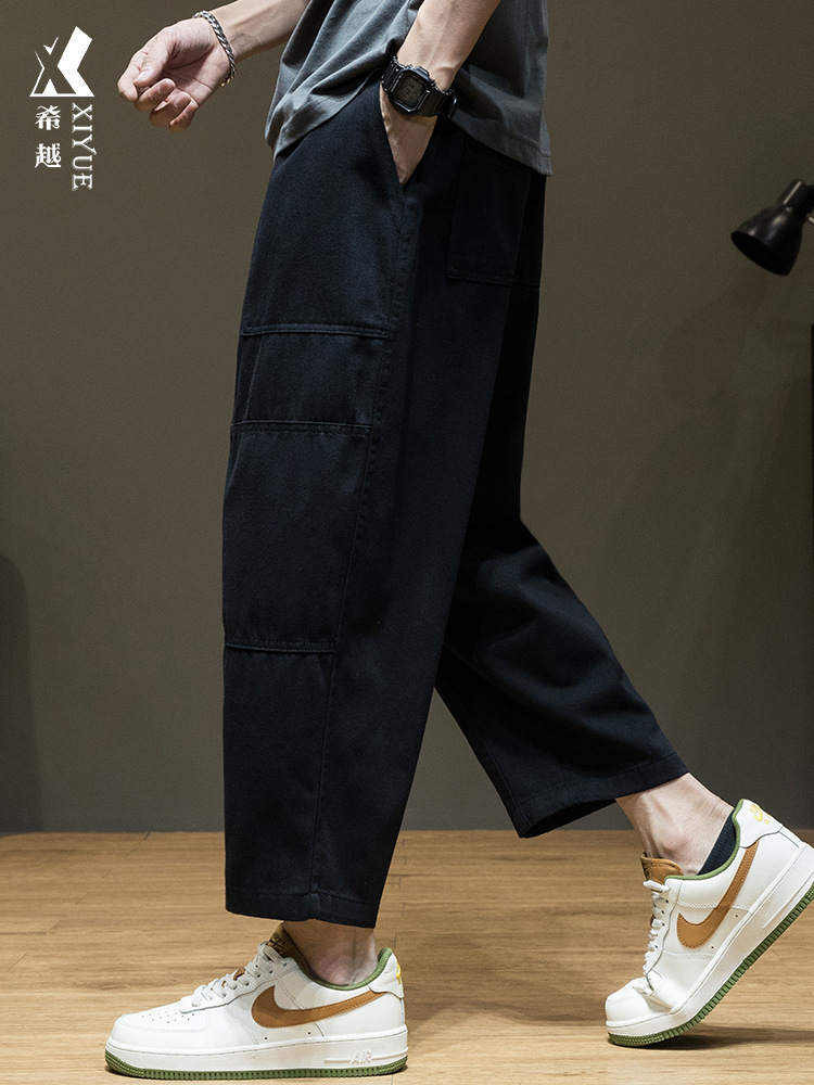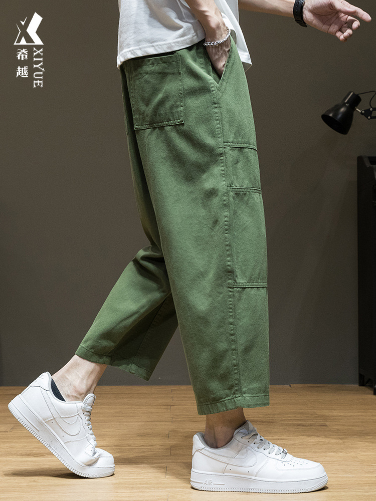 여름 남성 바지 카고 바지 스트레이트 레그 루즈한 플러스 사이즈 바지 통통한 남성 봄과 가을 얇은 캐주얼 바지 남성 트렌디스토어 가기