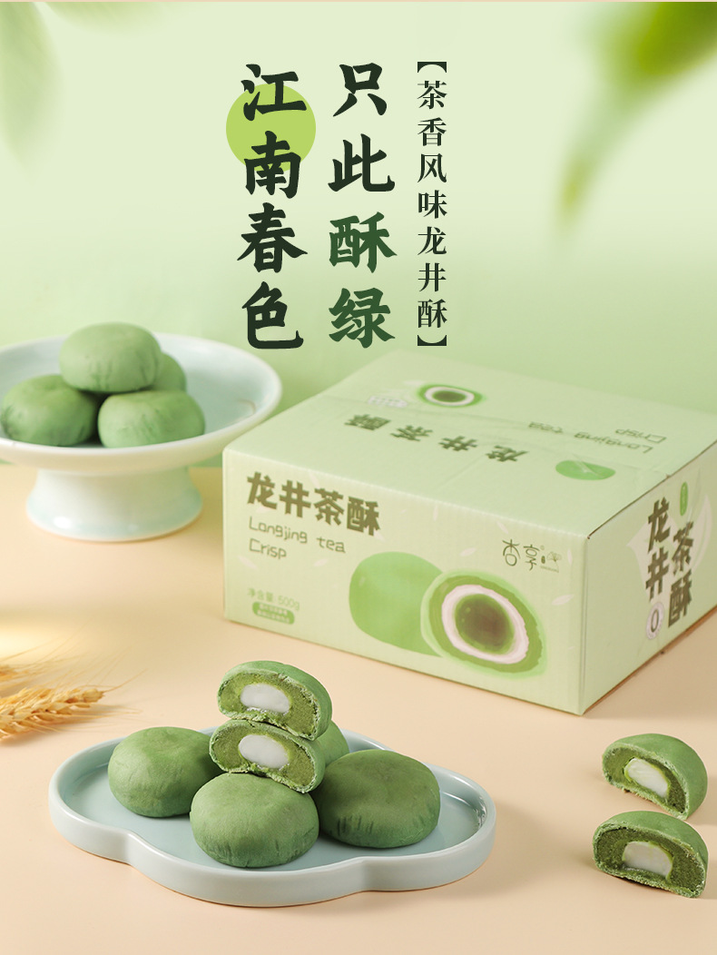 그물 빨강 롱징 파삭 파삭 한 녹차 케이크 눈 메이 니앙 말차 으깬 감자 항저우 서쪽 호수 명물 간식 차 도매스토어 가기