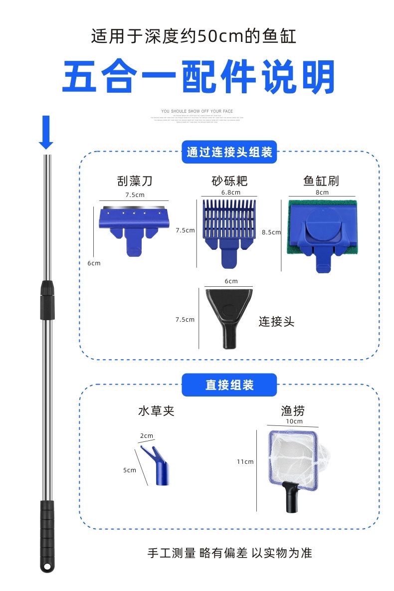 어항 5 대 1 유리 청소 브러시 교수형 조류 칼 모래 대패 개폐식 긴 손잡이 수족관 탱크 브러시 청소 도구스토어 가기