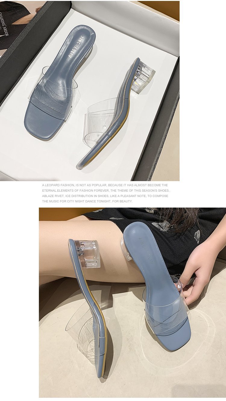 상쾌한 투명 크리스탈 슬립온 여성용 여름 아우터 스퀘어 토 샌들 모든 경기 인터넷 연예인 대학 하이힐 신발