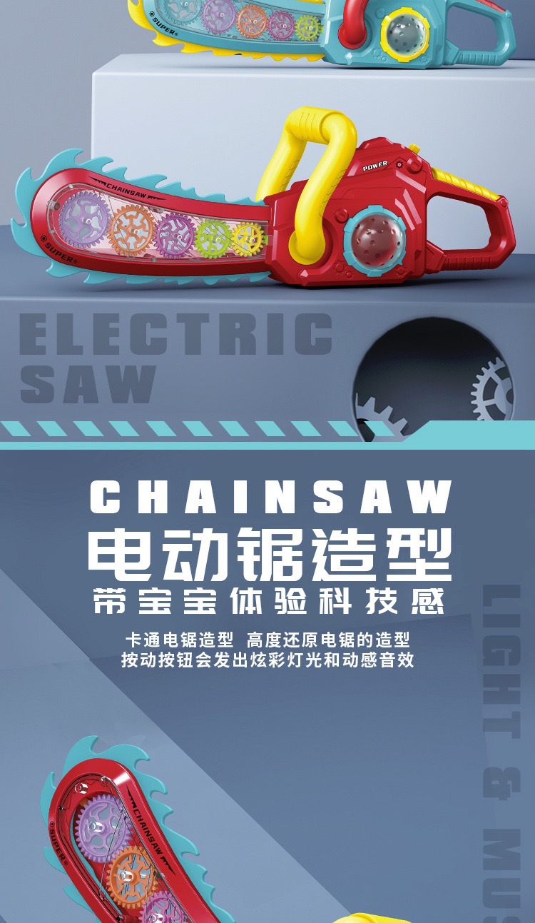 전기 기어 전기 톱 장난감 투명 발광 빛 음악 어린이 장난감