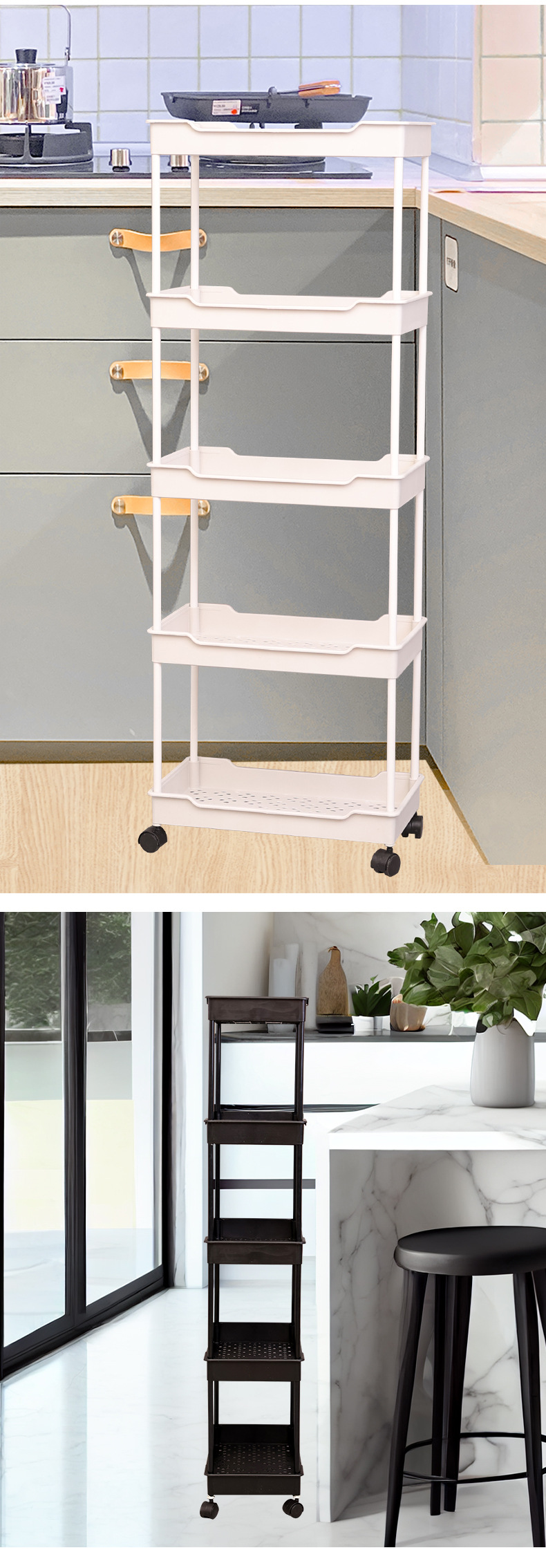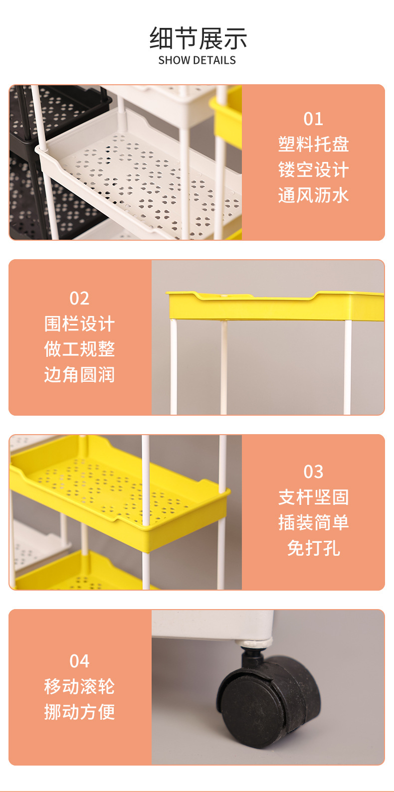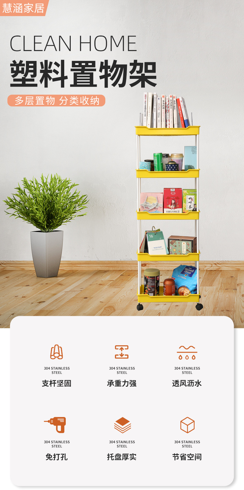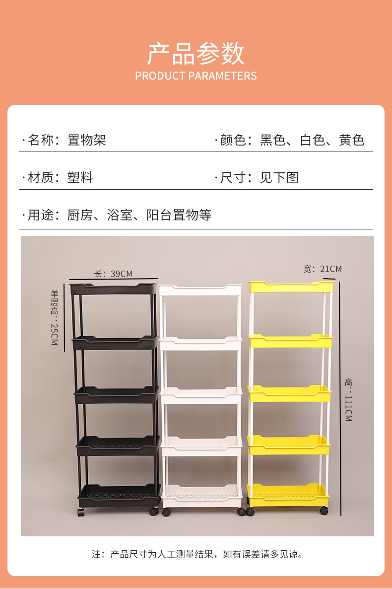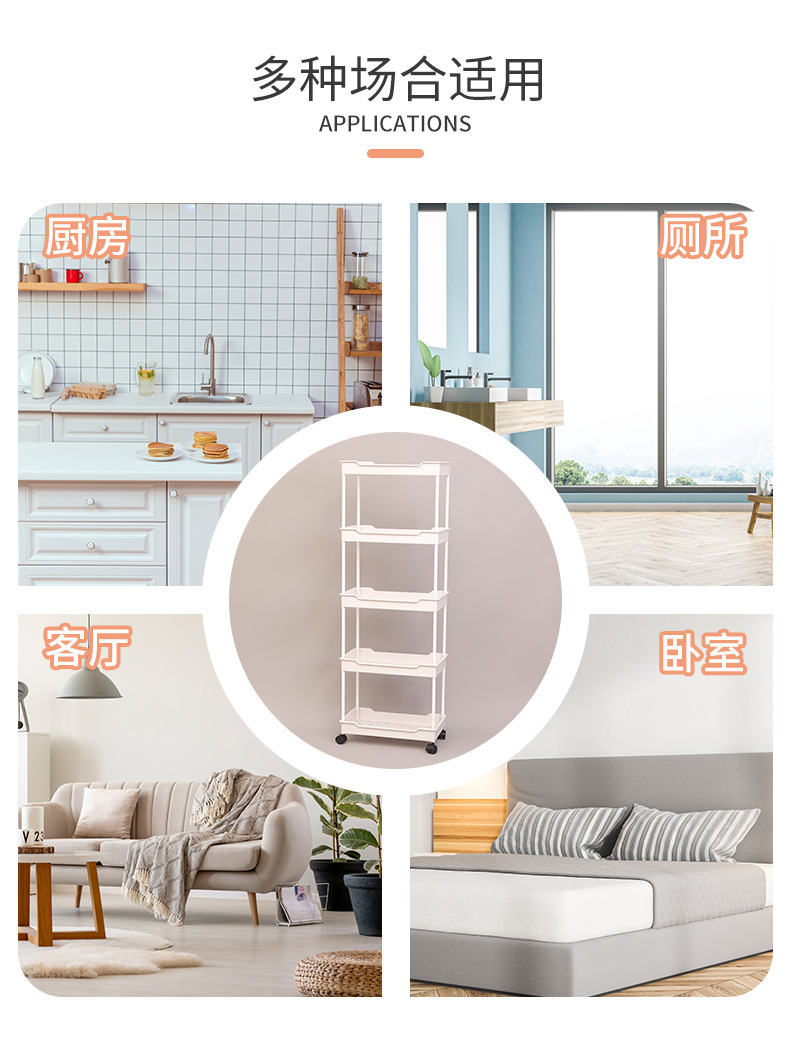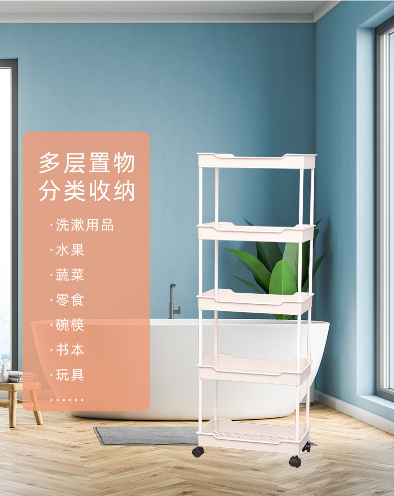 주방 가정용 바닥 스탠딩 트롤리 보관함 거실 다층 플라스틱 스낵 보관함 모바일 보관함스토어 가기