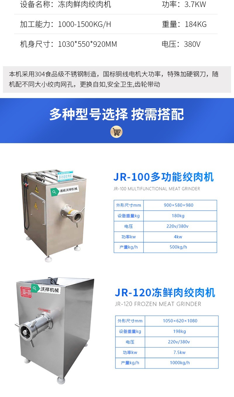 • JR-120 냉동 신선한 고기 고기 분쇄기