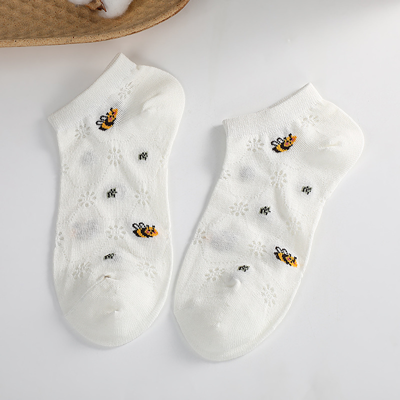 여름 얇은 짧은 튜브 양말 일본 간단한 학생 양말 작은 꿀벌 자수 메쉬 통기성 양말 보트 양말 도매스토어 가기