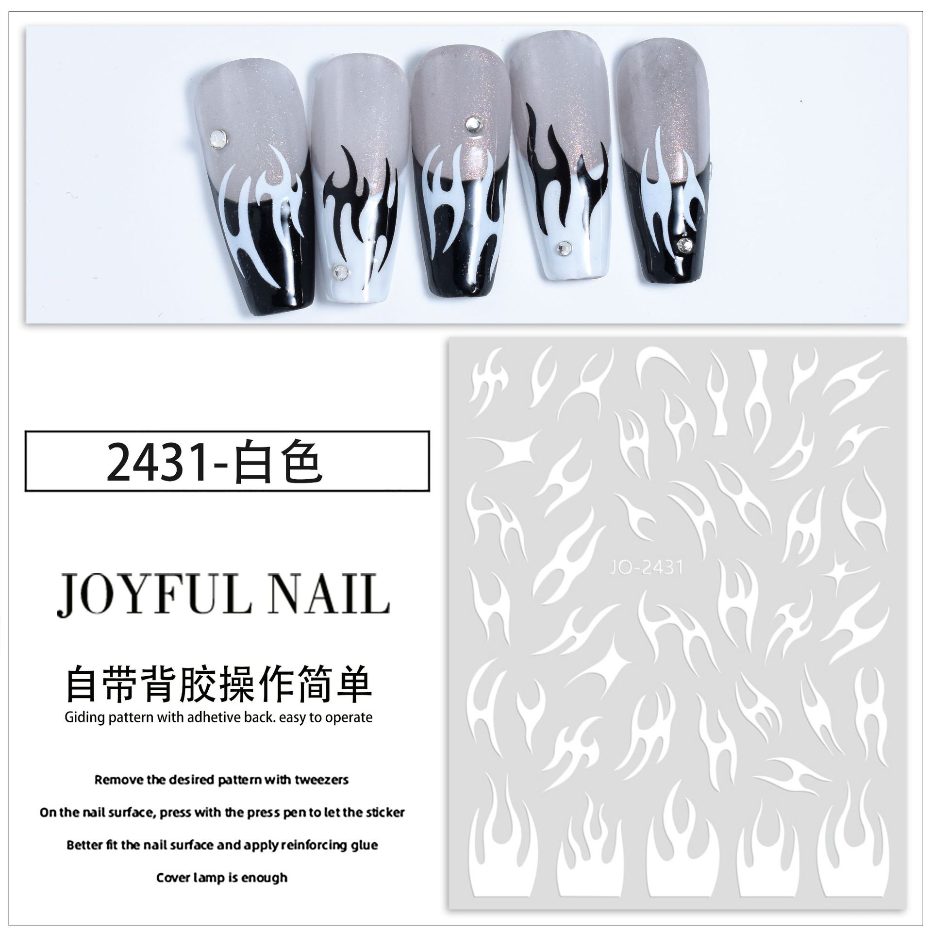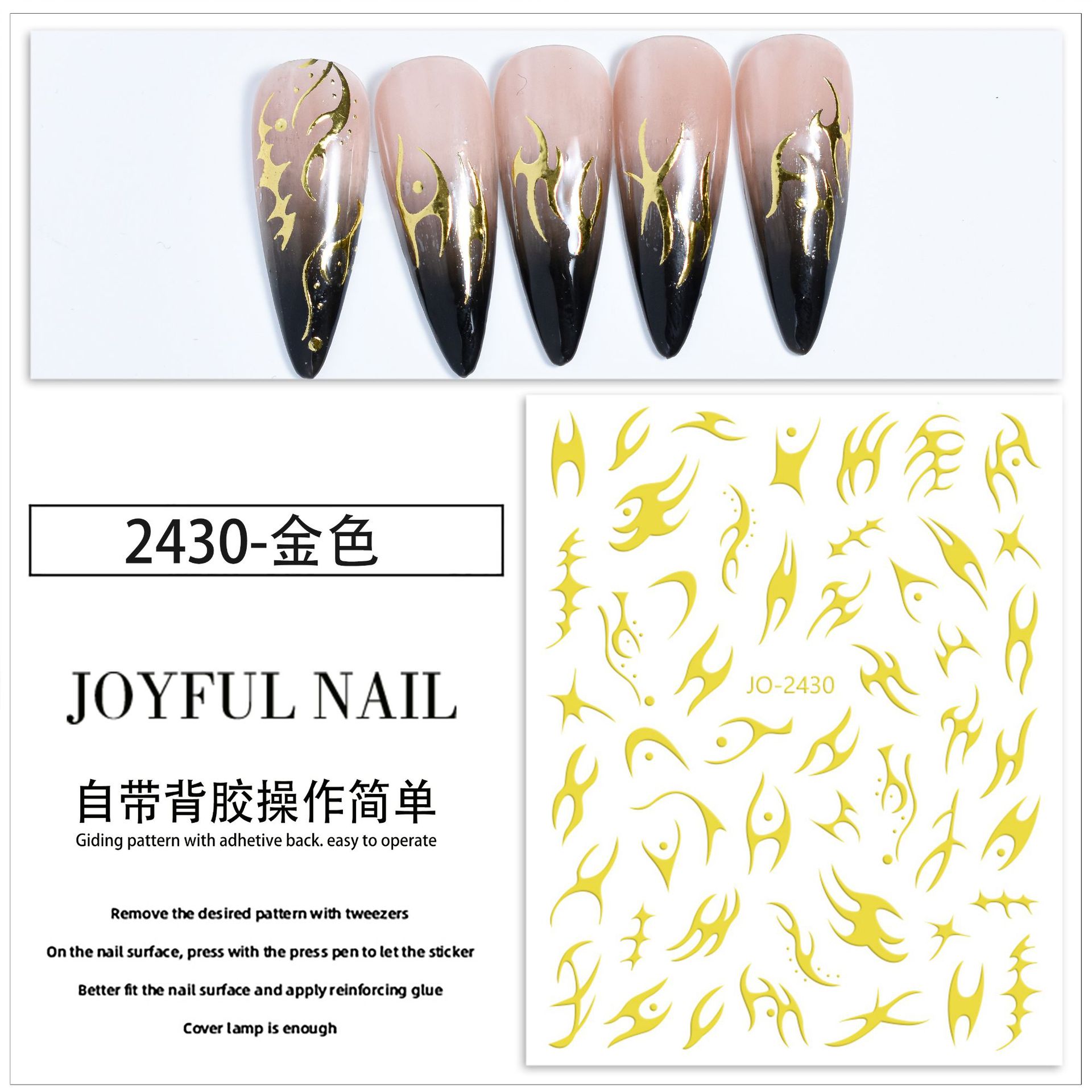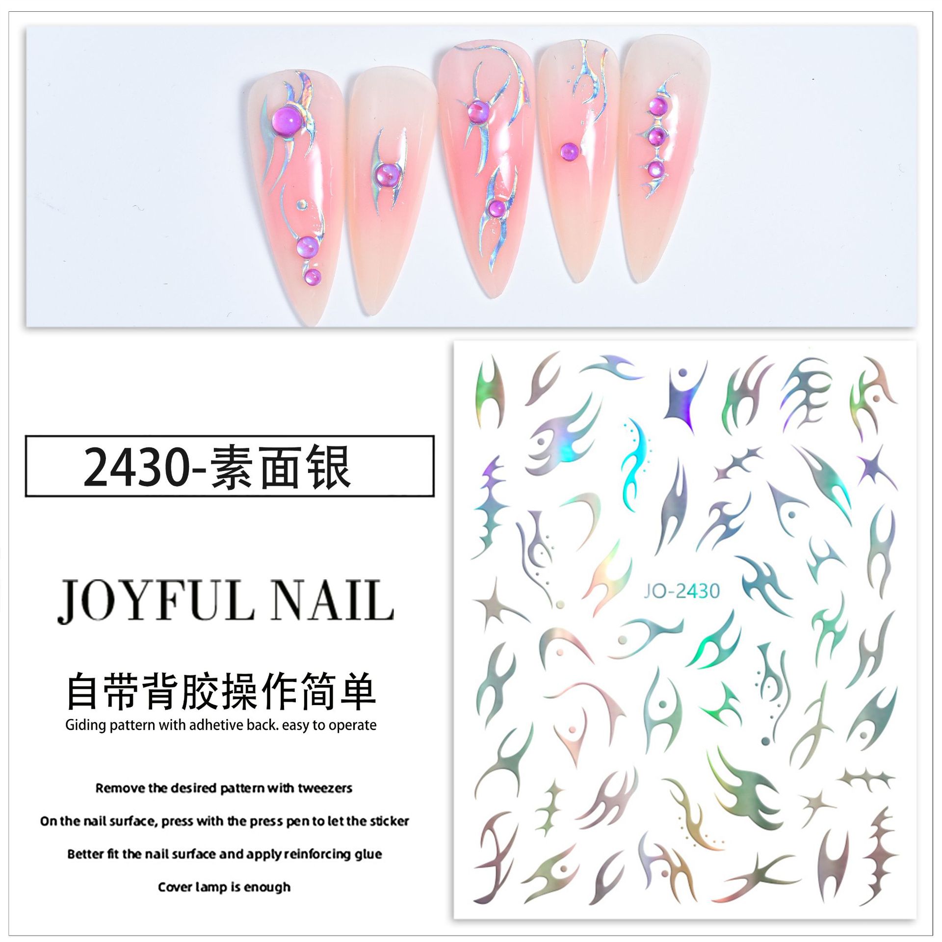 Y2k 불규칙한 불꽃 피시본 라인 네일 아트 스티커 오로라 핫 실버 레이저 불규칙한 다시 접착 네일 스티커