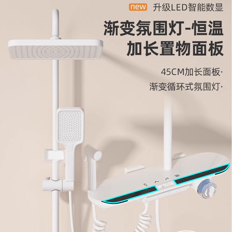 화이트 샤워 일정한 온도 샤워 세트 욕실 분위기 빛 디지털 디스플레이 샤워 샤워 헤드 욕실 도매