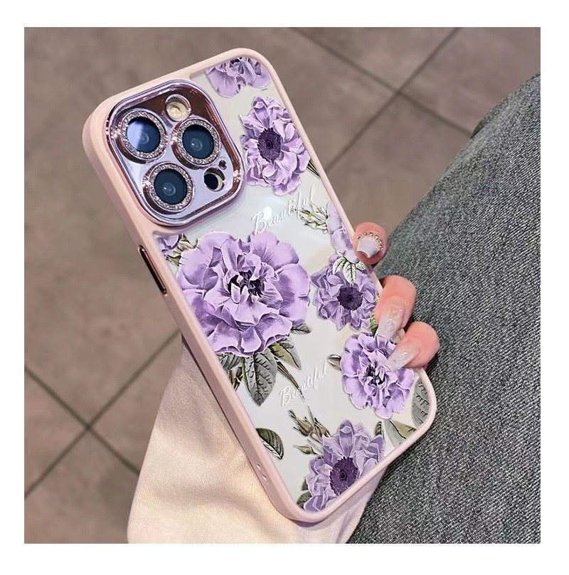 • [보라색 해바라기-모래 핑크] 플래시 드릴 렌즈 필름 일체형 쉘