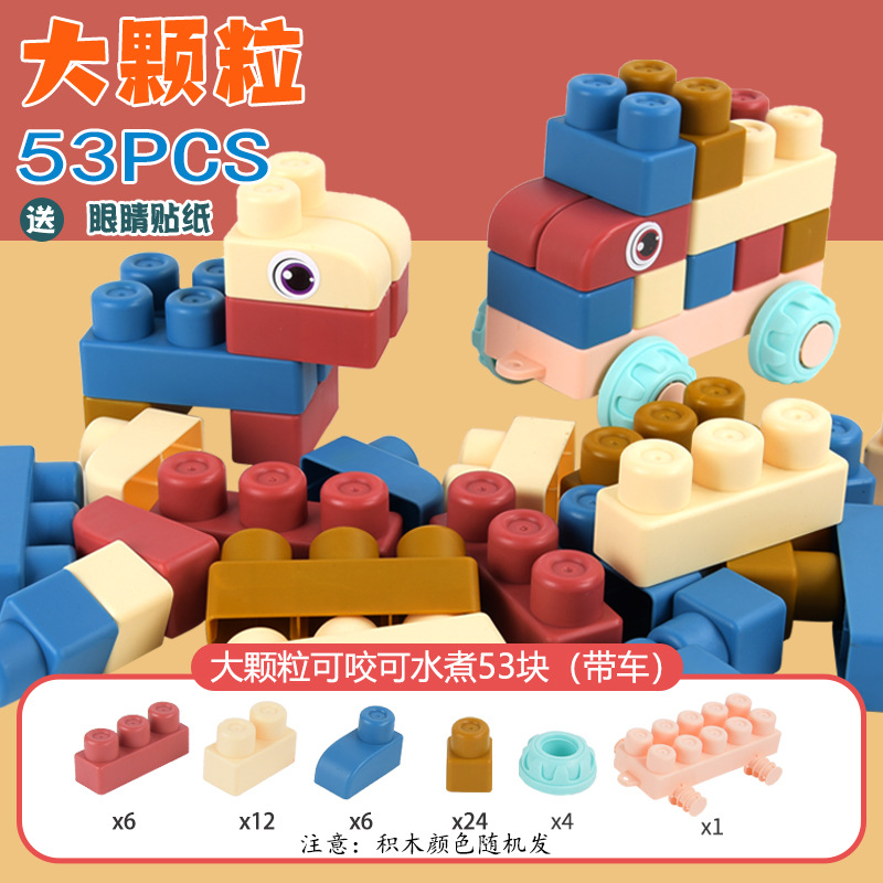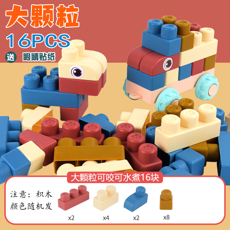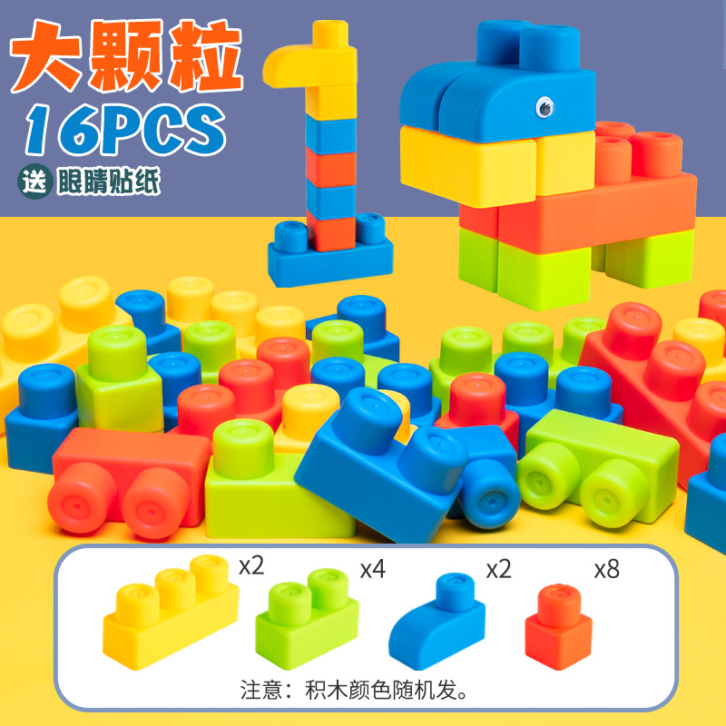 [무료 배송] 어린이 조기 교육 교육용 조립 빌딩 블록 유아는 큰 부드러운 고무 빌딩 블록을 물고 끓일 수 있습니다