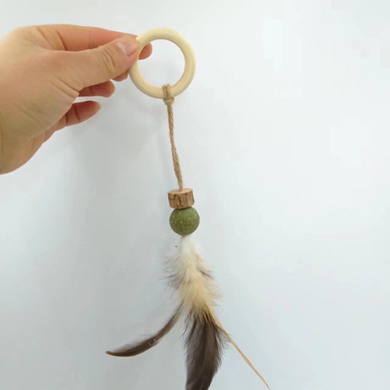 애완 동물 용품 깃털 펜던트 술 단단한 나무 반지 재미있는 고양이 스틱 교체 머리 고양이 장난감 개박하 어금니 장난감스토어 가기