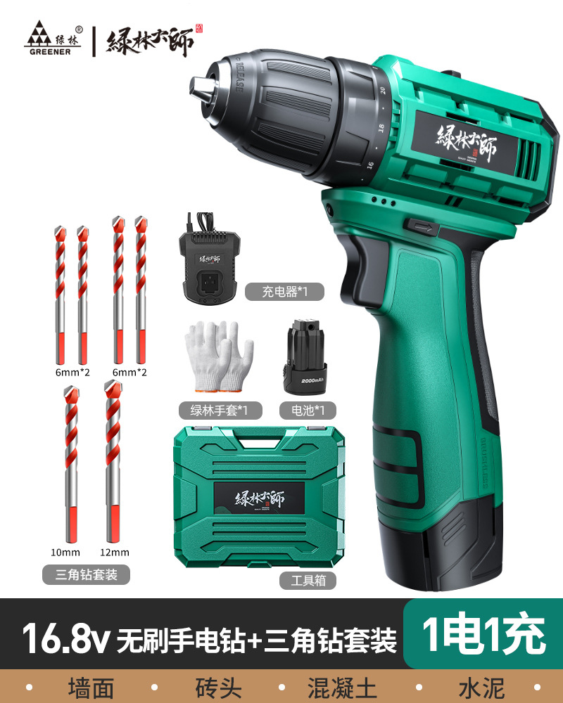 • 16.8V 브러시리스 핸드 드릴 + 삼각형 드릴 세트