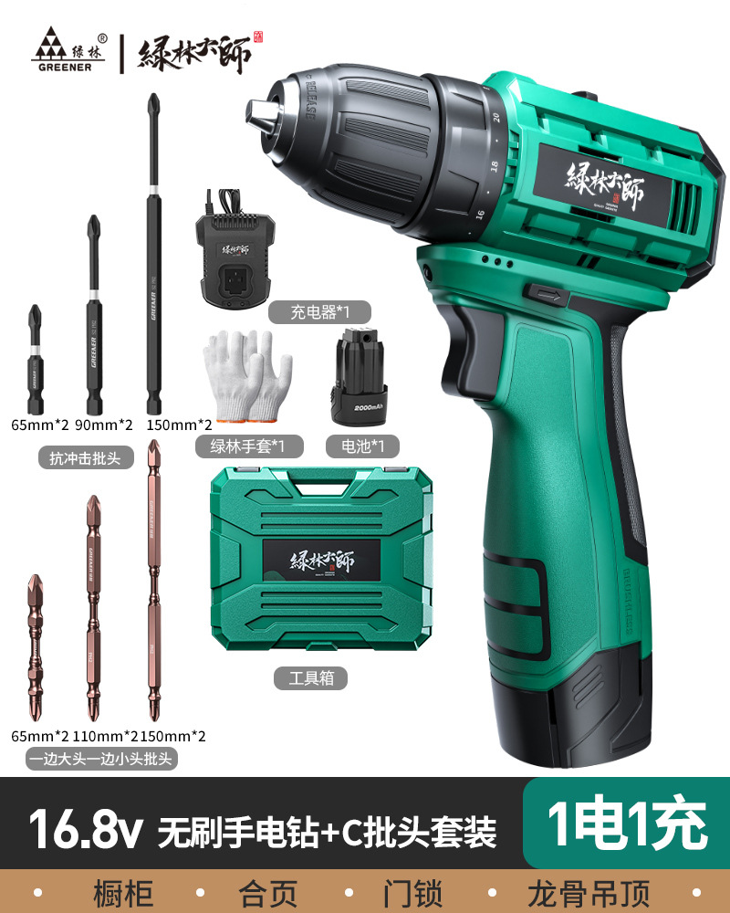 • 16.8V 브러시리스 핸드 드릴 + C 배치 헤드 세트