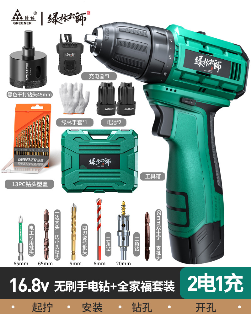 • 16.8V 브러시리스 핸드 전기 드릴 + 트위스트 드릴 세트