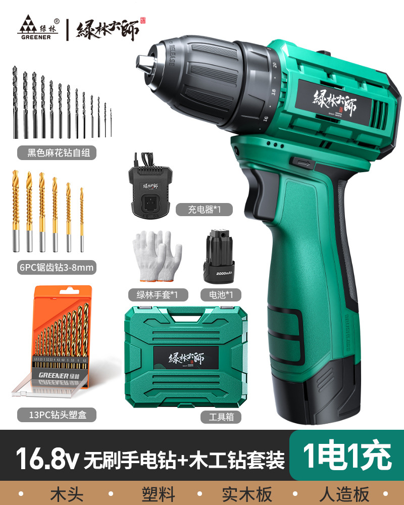 • 16.8V 브러시리스 핸드 드릴 + 목공 드릴 세트