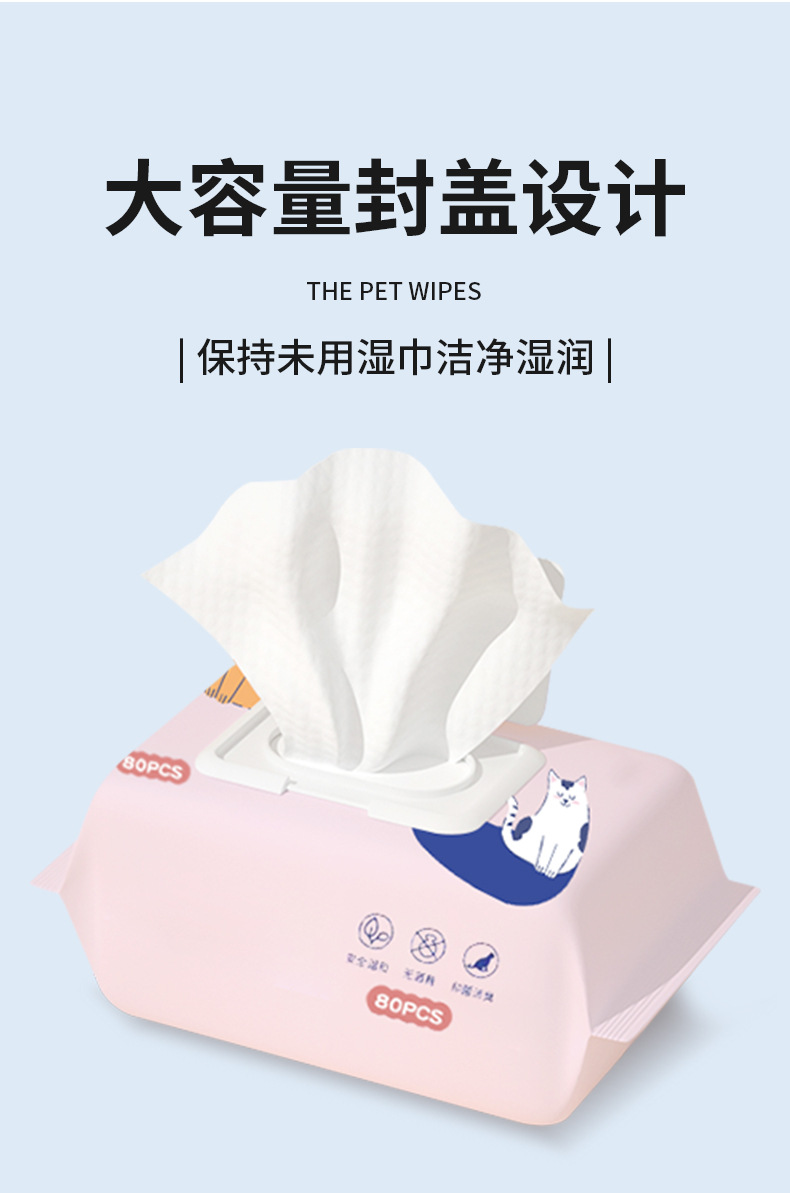 애완 동물 젖은 물티슈 80 고양이 개 청소 물티슈 탈취 및 맛 제거 와이프없는 와이프 두꺼운 젖은 물티슈 도매