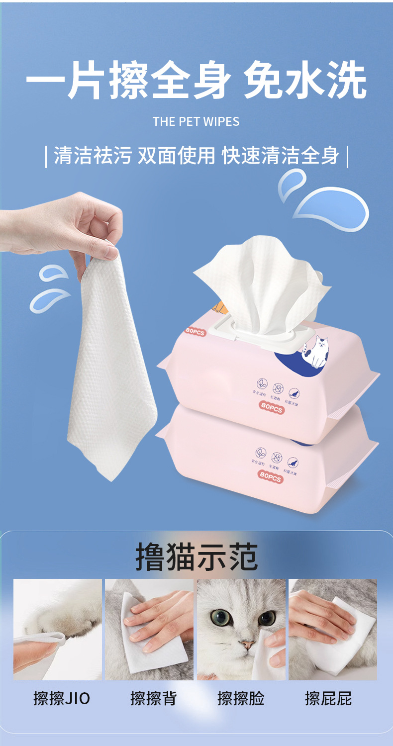 애완 동물 젖은 물티슈 80 고양이 개 청소 물티슈 탈취 및 맛 제거 와이프없는 와이프 두꺼운 젖은 물티슈 도매스토어 가기