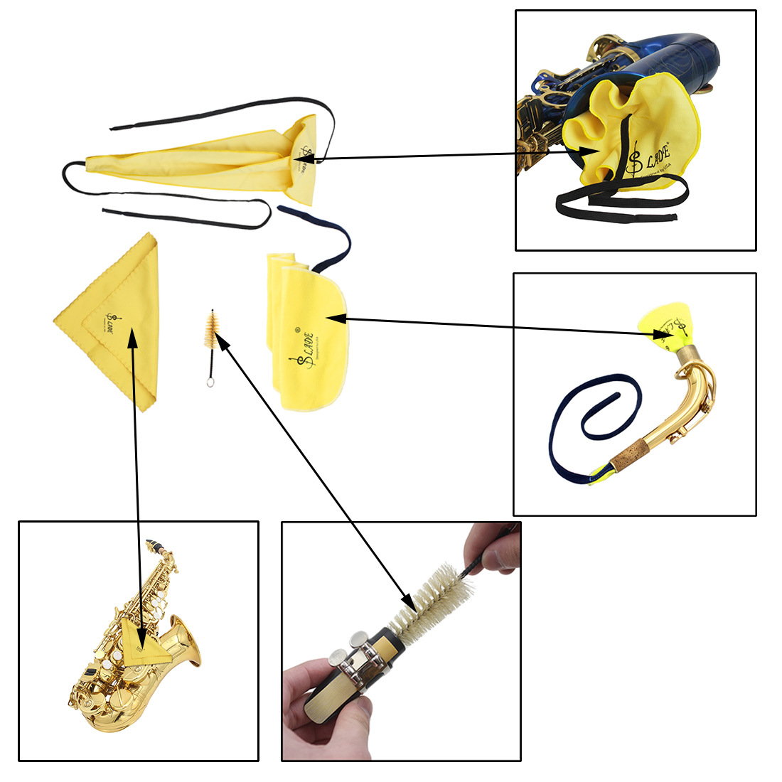 색소폰 청소 4 피스 휴대용 보관 노란 밴드 천 입체 밴드 천 청소 천 플루트 헤드 브러시 세트 도매스토어 가기