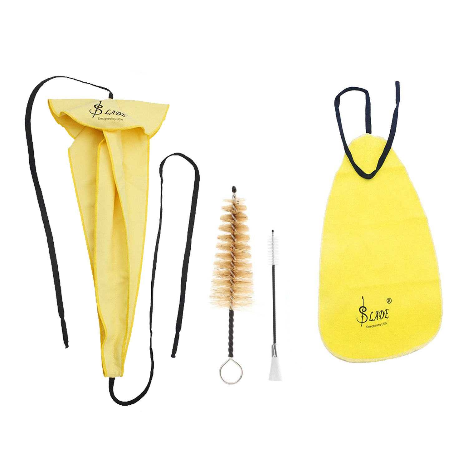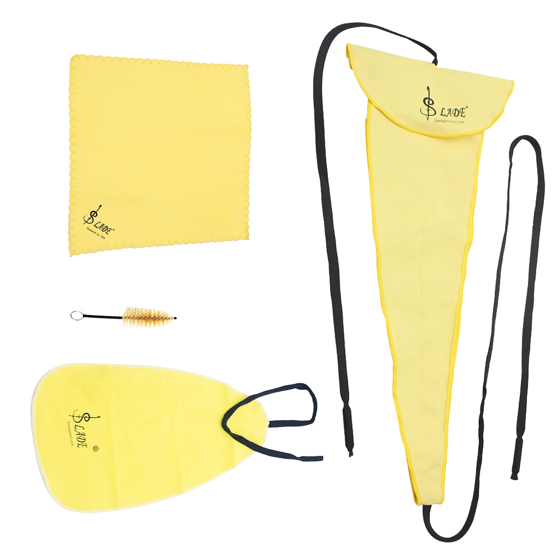 색소폰 청소 4 피스 휴대용 보관 노란 밴드 천 입체 밴드 천 청소 천 플루트 헤드 브러시 세트 도매