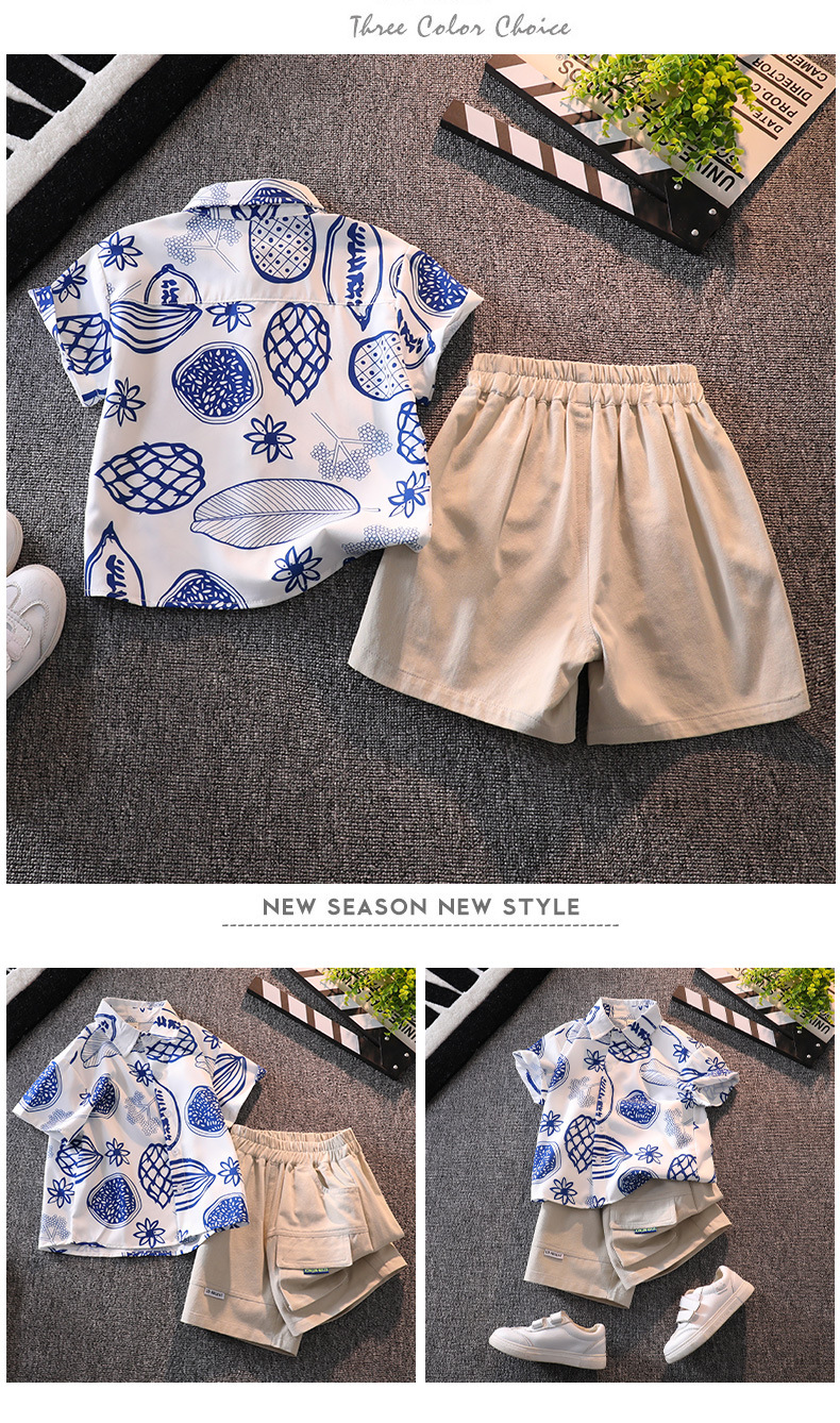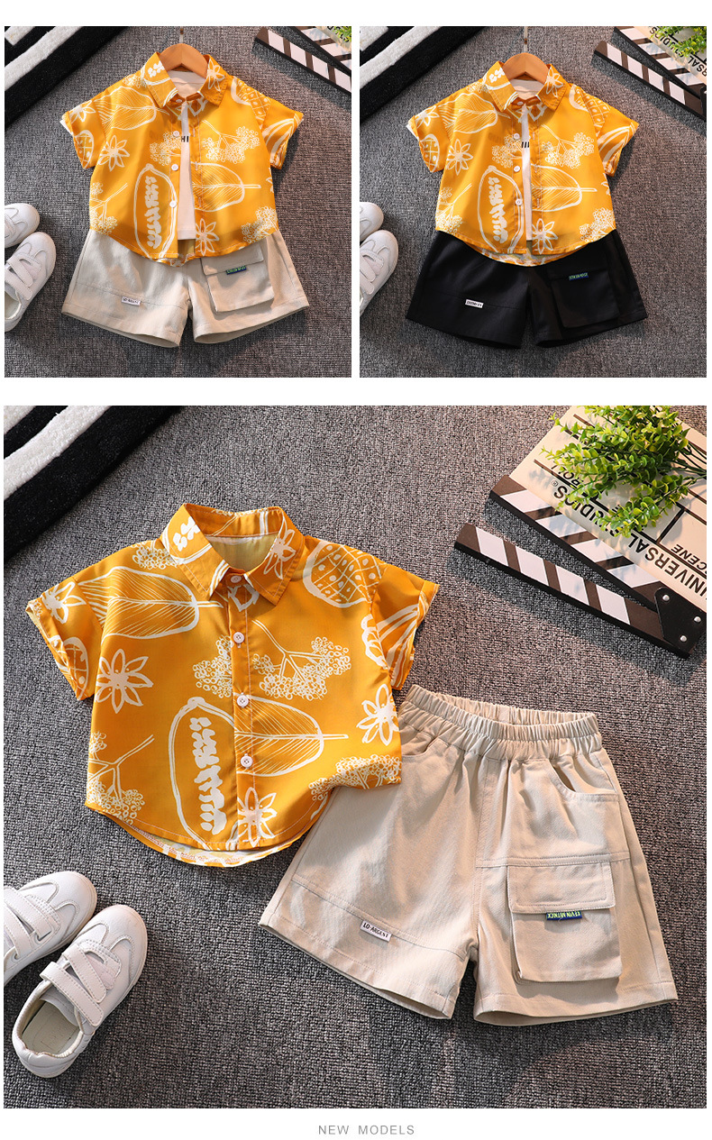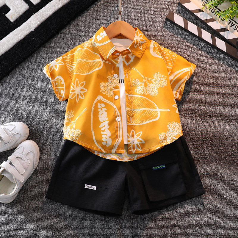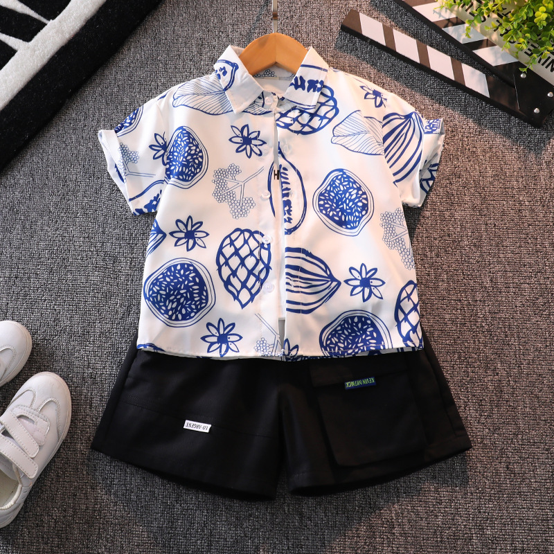 소년 여름 반팔 꽃 셔츠 캐주얼 아기의 최고 여름 유행 어린이 셔츠 소년 반바지 세트