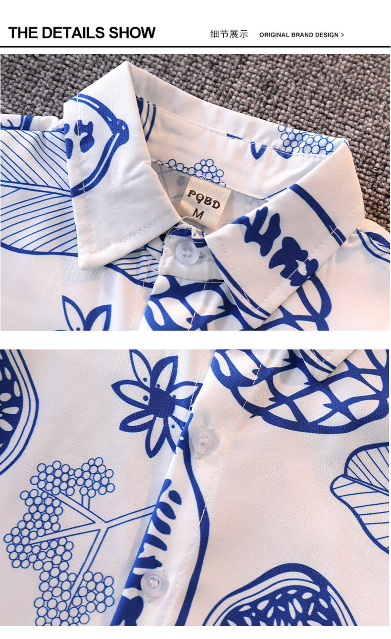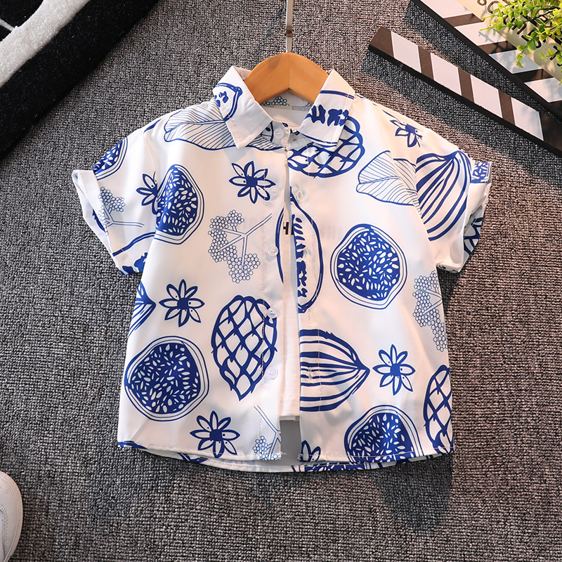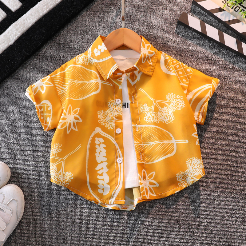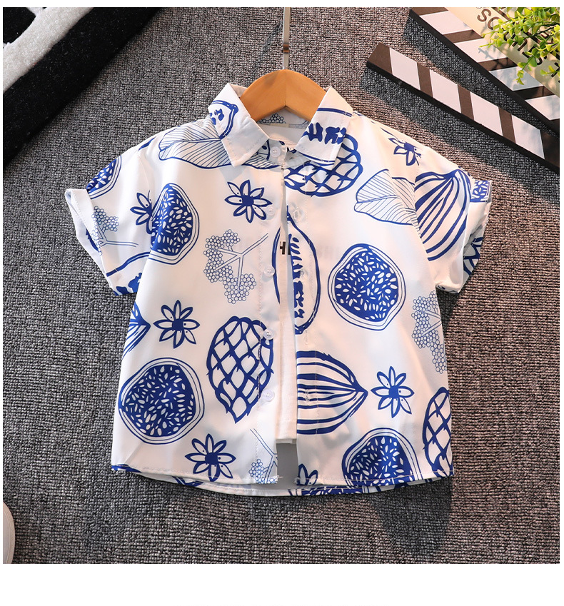 소년 여름 반팔 꽃 셔츠 캐주얼 아기의 최고 여름 유행 어린이 셔츠 소년 반바지 세트