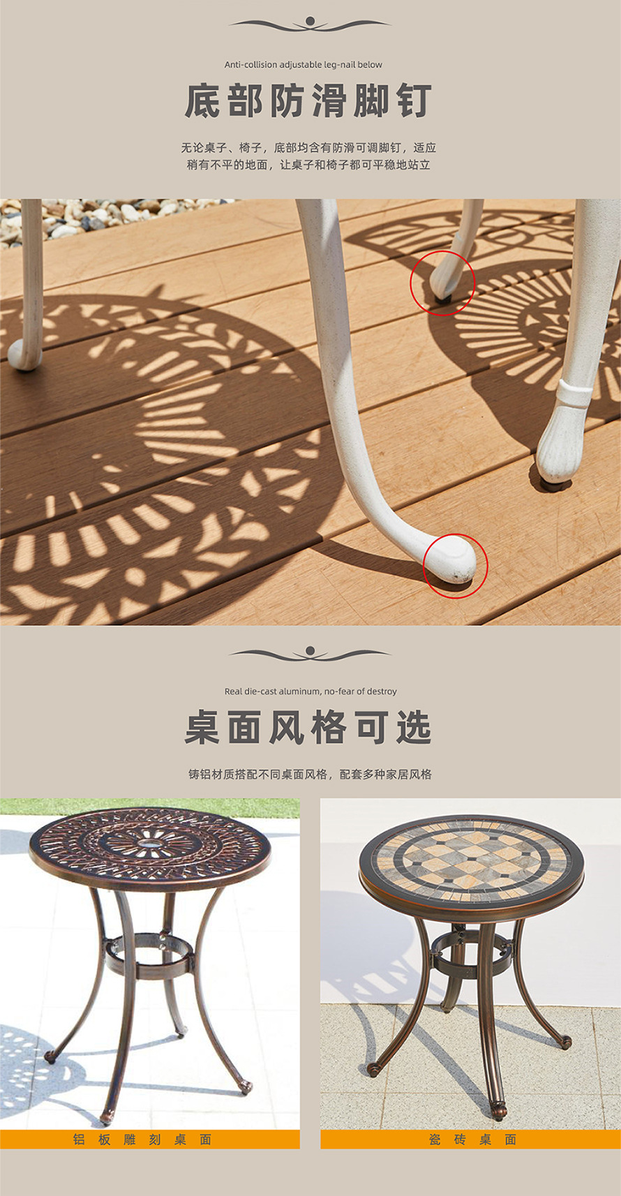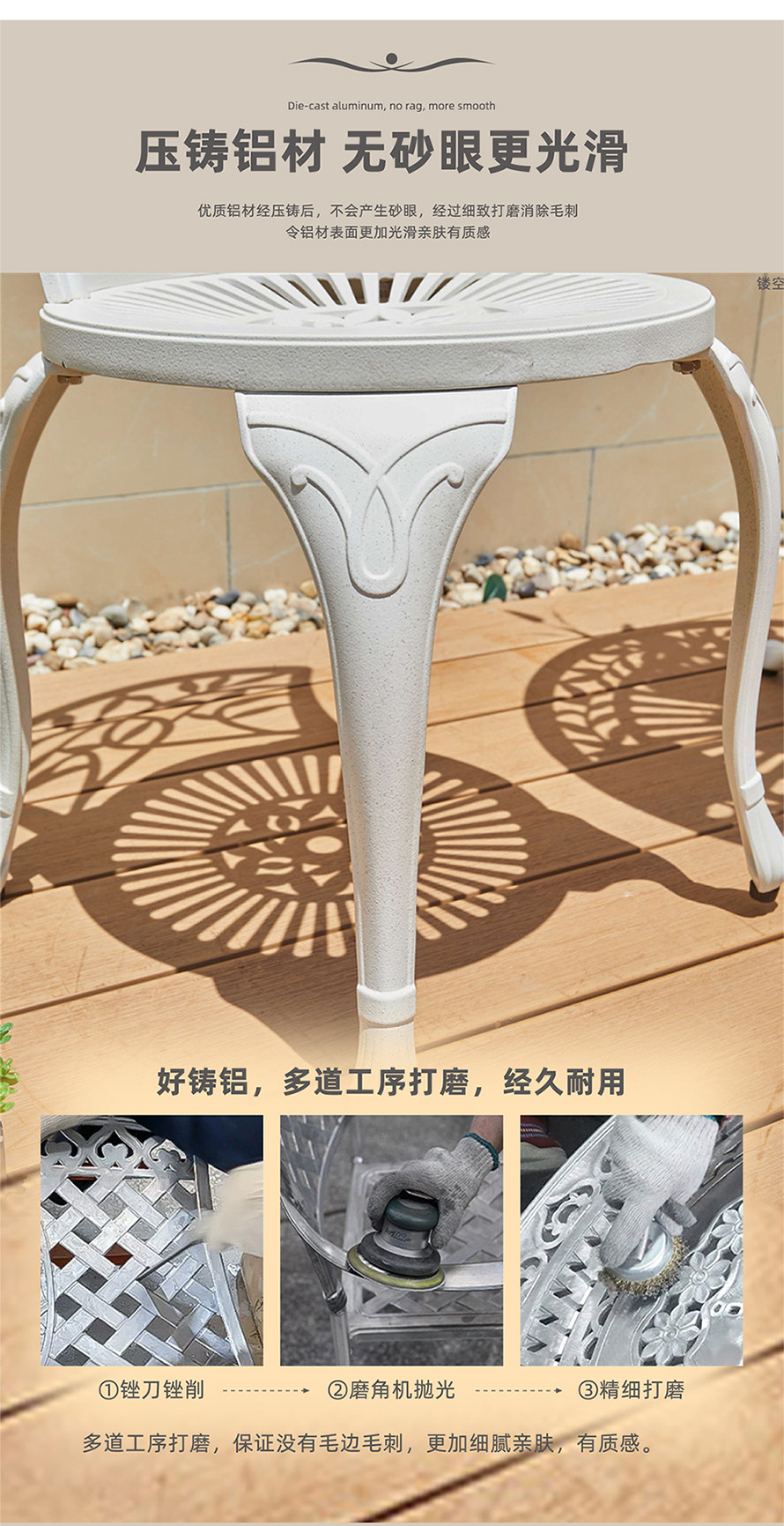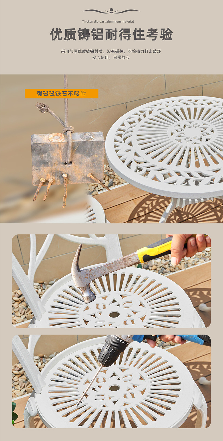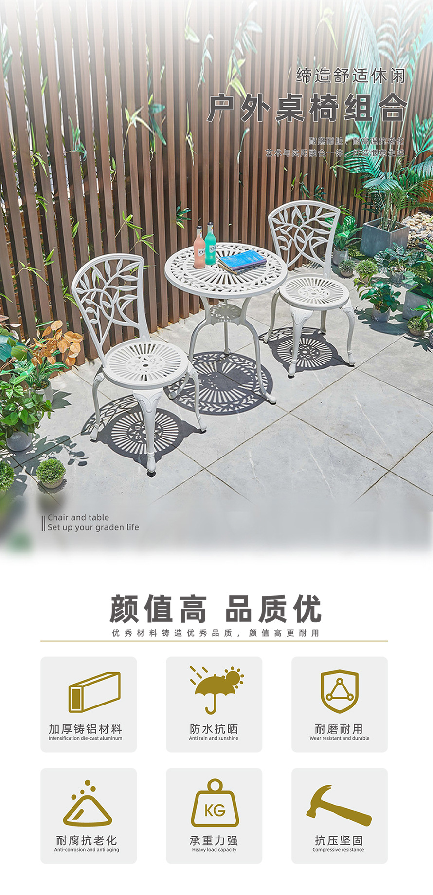 야외 금속 테이블과 의자 조합 안뜰 정원 야외 화이트 캐주얼 야외 발코니 방수 간단한 철제 테이블과 의자스토어 가기