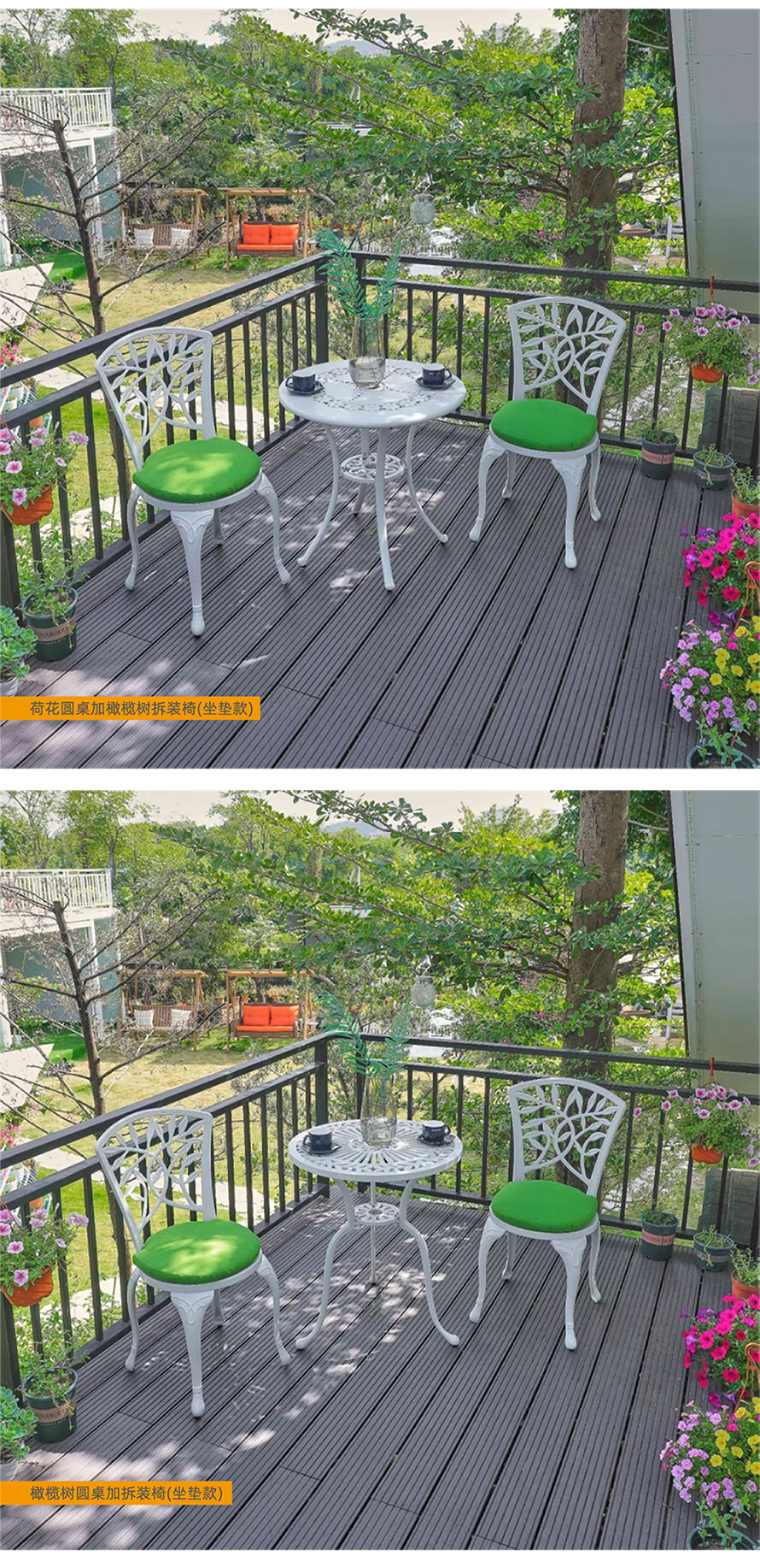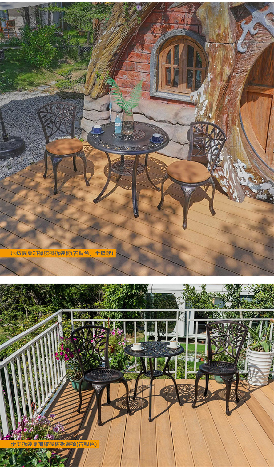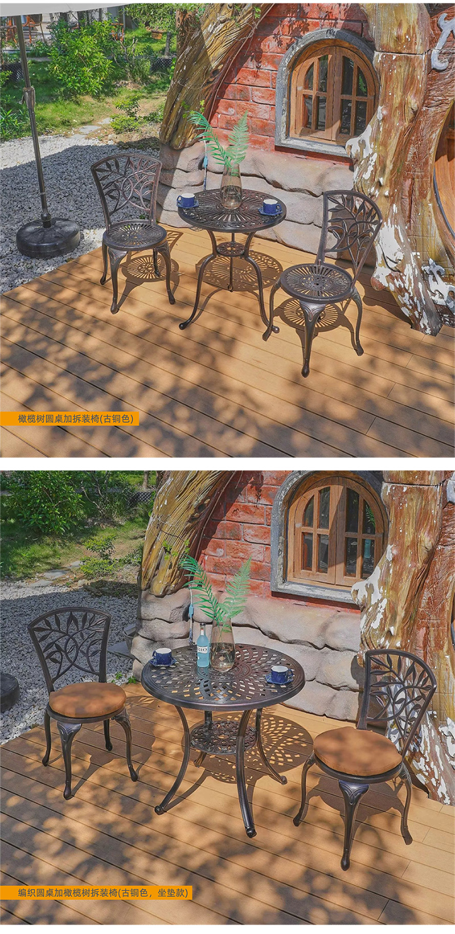 야외 금속 테이블과 의자 조합 안뜰 정원 야외 화이트 캐주얼 야외 발코니 방수 간단한 철제 테이블과 의자