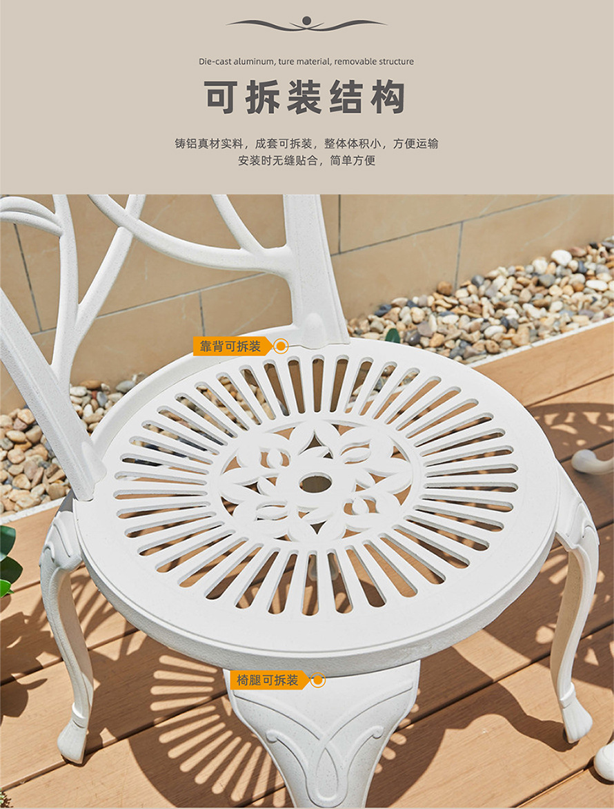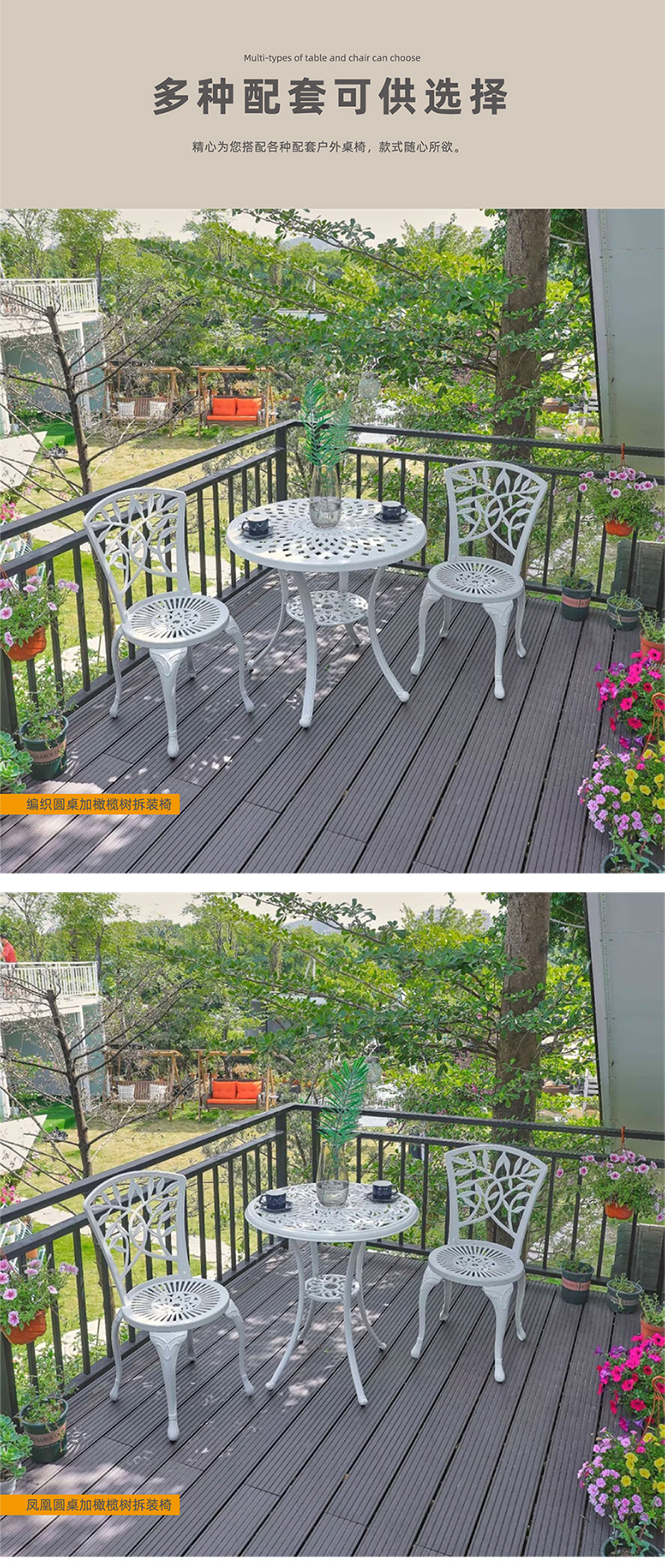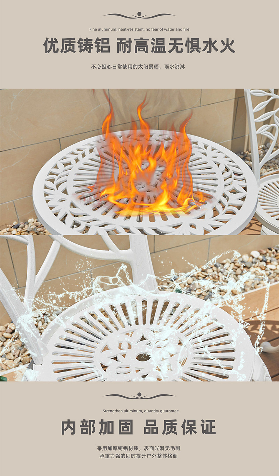 야외 금속 테이블과 의자 조합 안뜰 정원 야외 화이트 캐주얼 야외 발코니 방수 간단한 철제 테이블과 의자