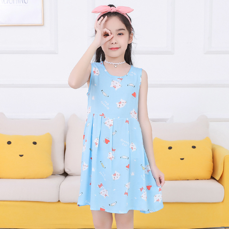 여름 새로운 어린이 가벼운 실크 원피스 소녀 민소매 공주 잠옷 아기 꽃 조끼 원피스스토어 가기