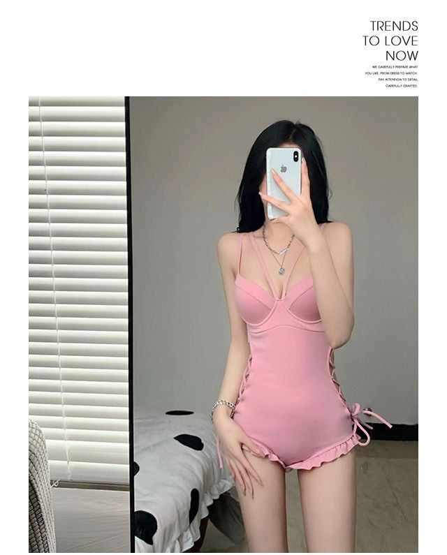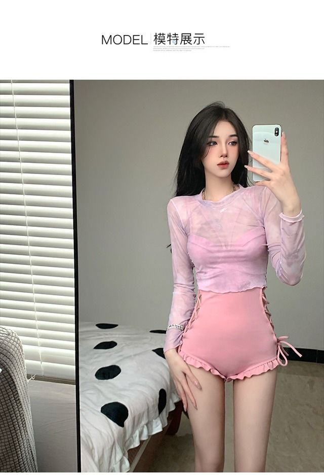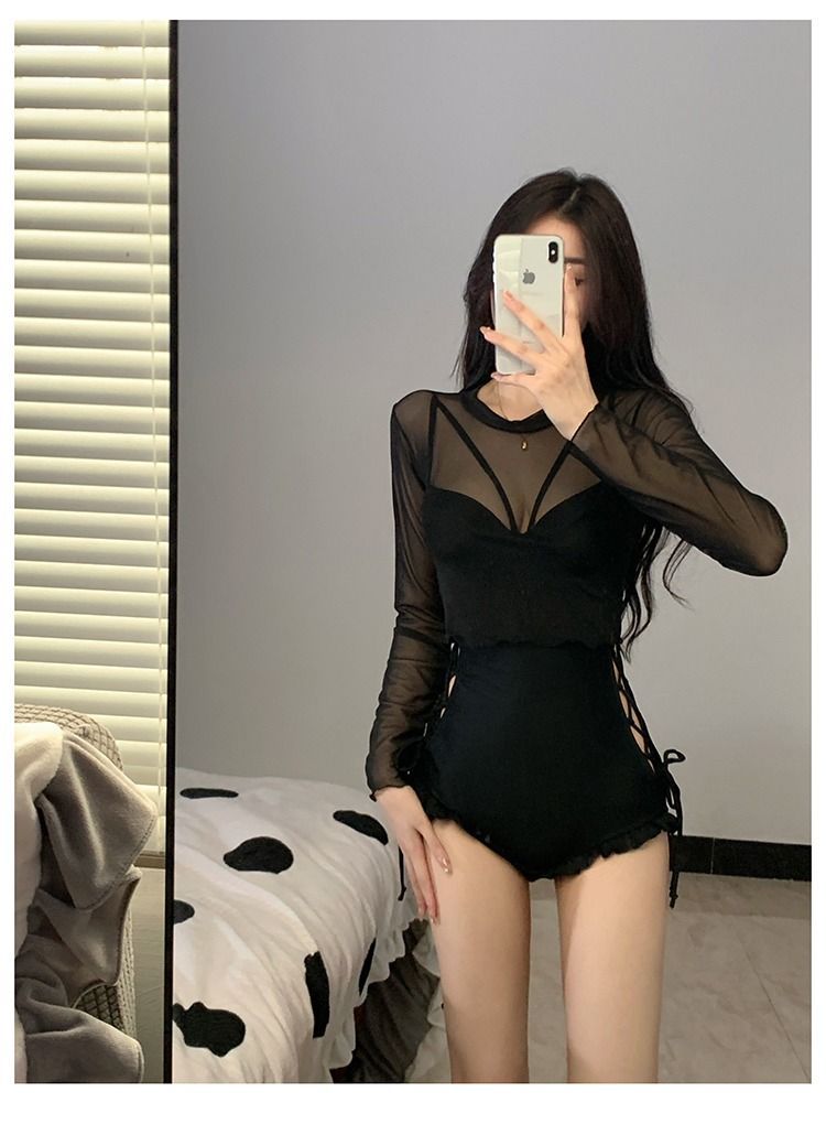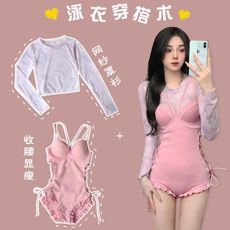 여성용 수영복 여름 원피스 보수적 자외선 차단 긴팔 배 커버 슬리밍 신작 2025 온천 수영복스토어 가기