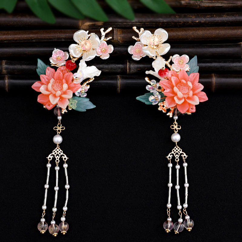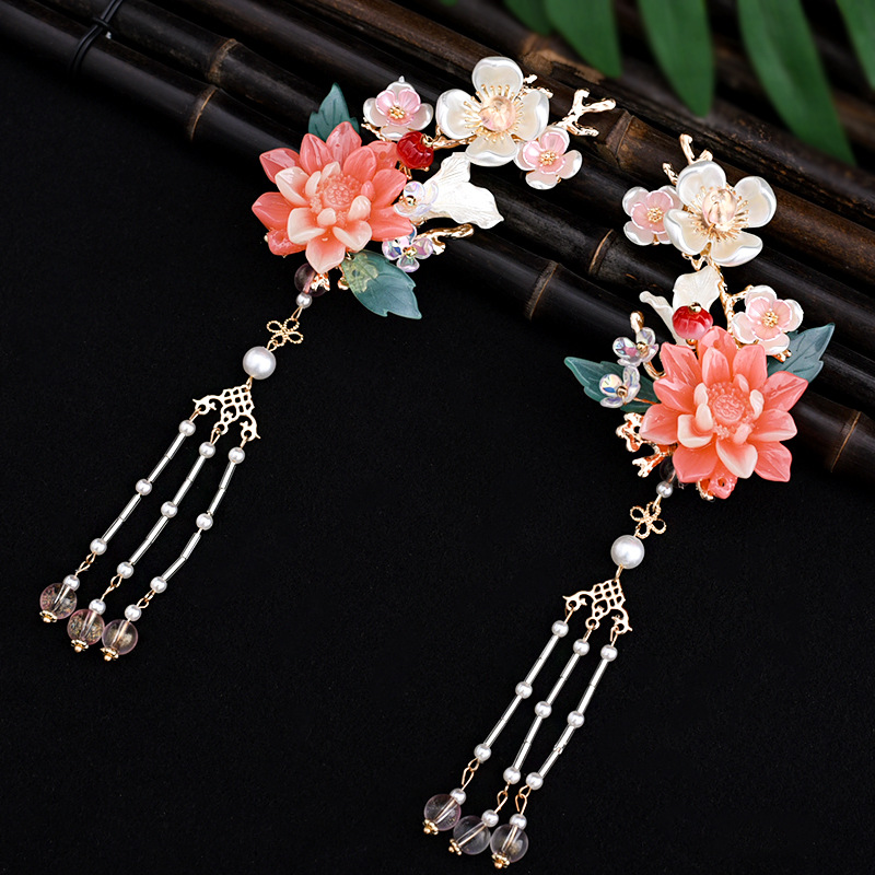 Hanfu 모자 착용 여자의 액세서리 빨간 머리 클립 고대 머리 액세서리 골동품 머리 클립 술 요정 세트 어린이 여성