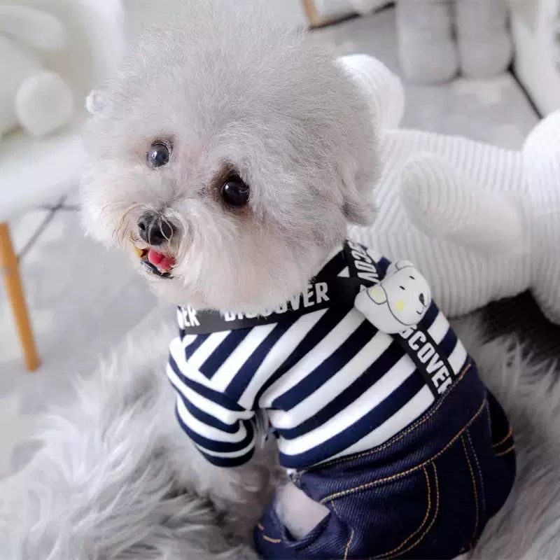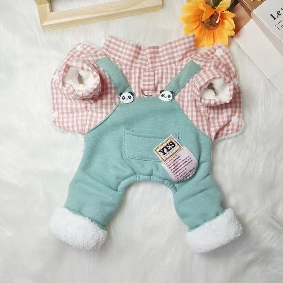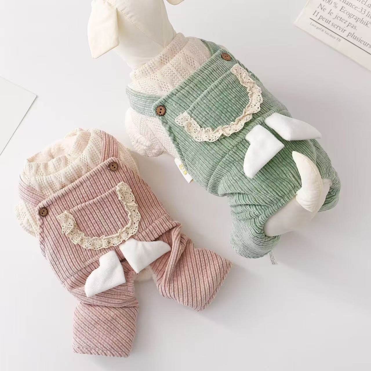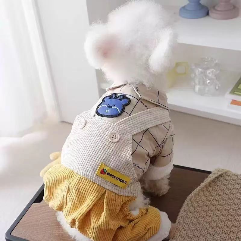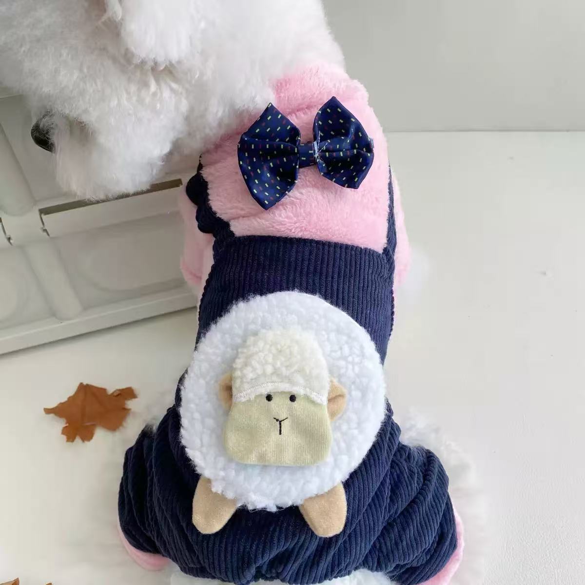 애완 동물 곰 작은 개 테디독 옷 가을과 겨울 겨울 면 코트 코듀로이 베어 스트랩 네 다리 옷