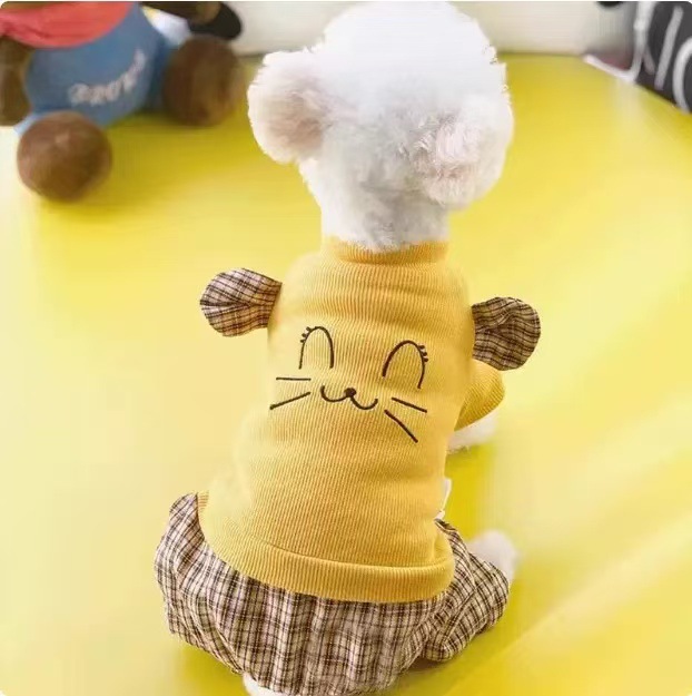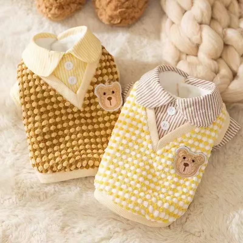 애완 동물 곰 작은 개 테디독 옷 가을과 겨울 겨울 면 코트 코듀로이 베어 스트랩 네 다리 옷스토어 가기