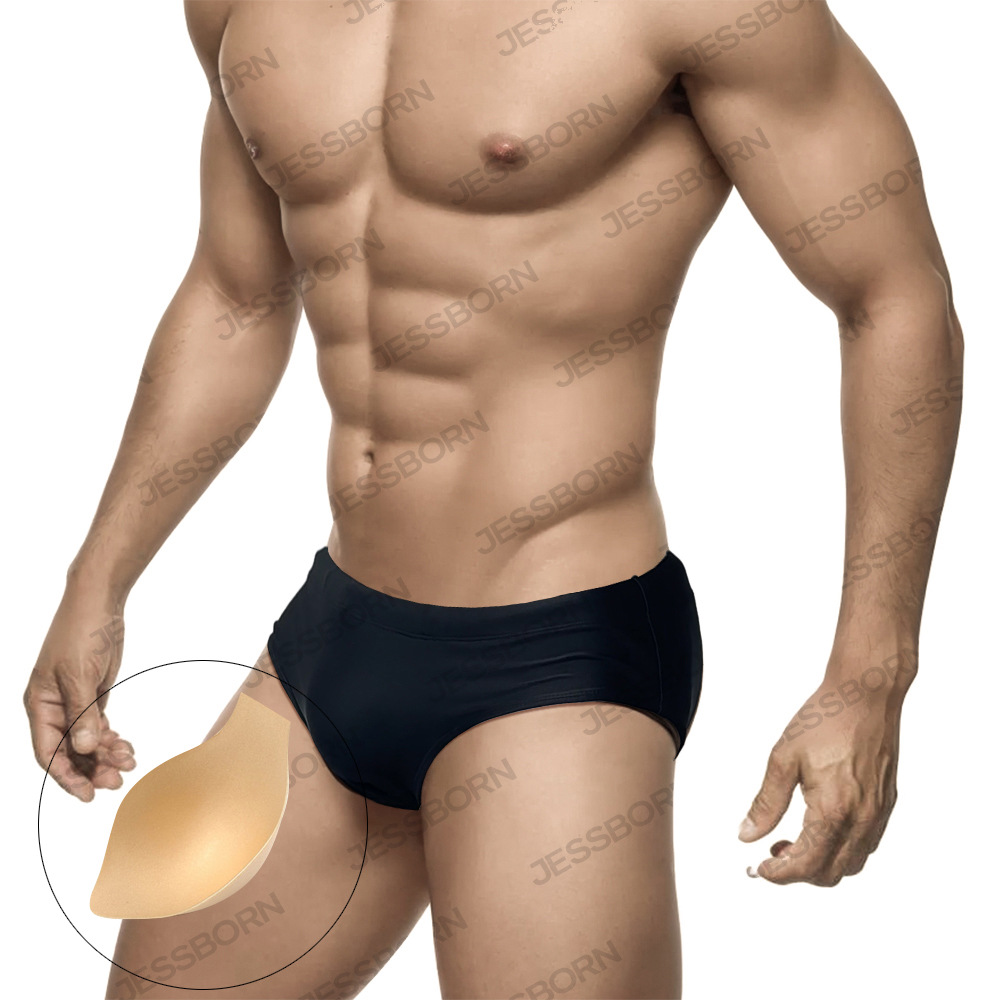 JESSBORN 남성용 단색 삼각형 수영 트렁크 컵 당황 방지 수영 트렁크 온천 비치 서핑 브리프